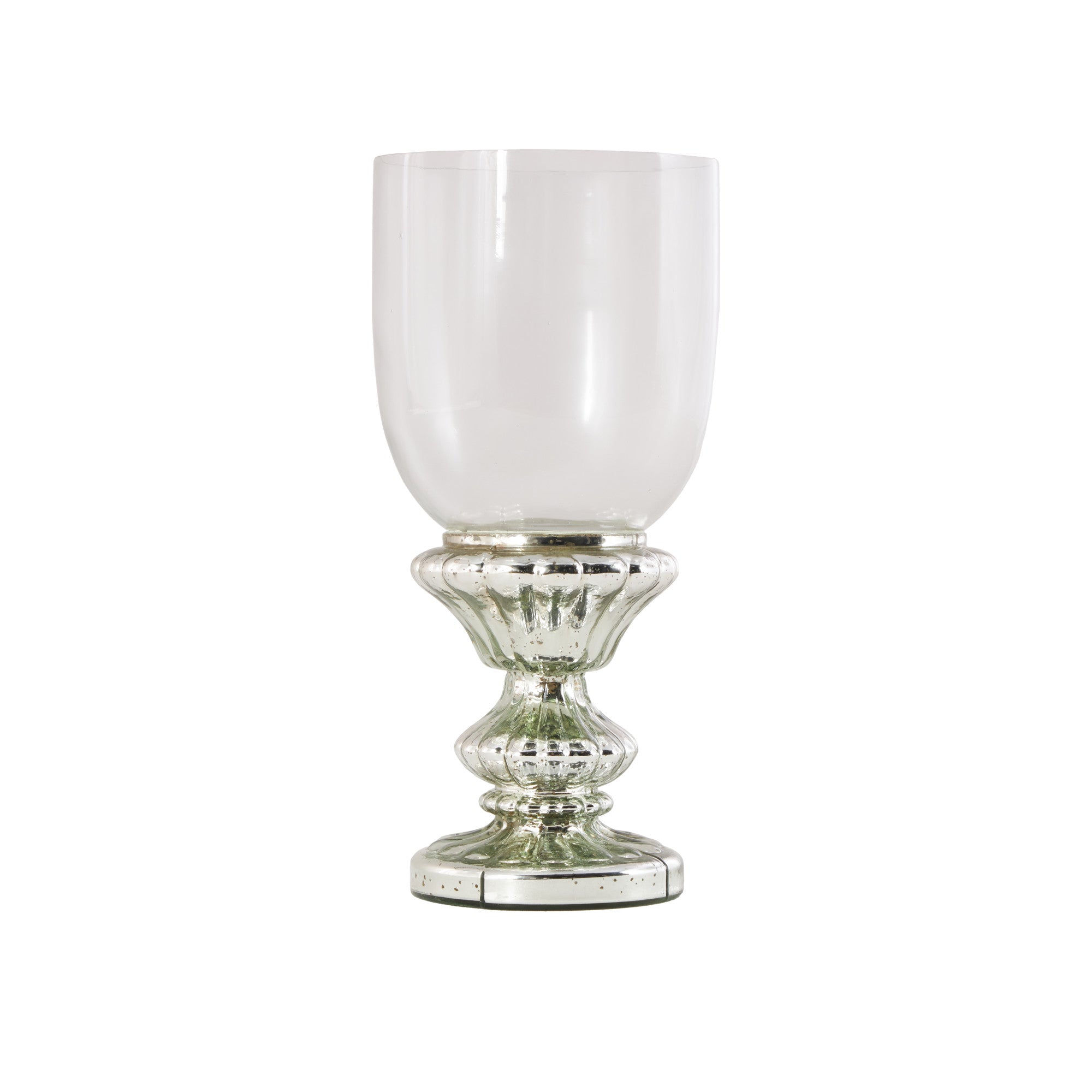 Silver Glass Handmade Turned Style Pillar Room Hurricane Lamp with Faux Mercury Glass Finish