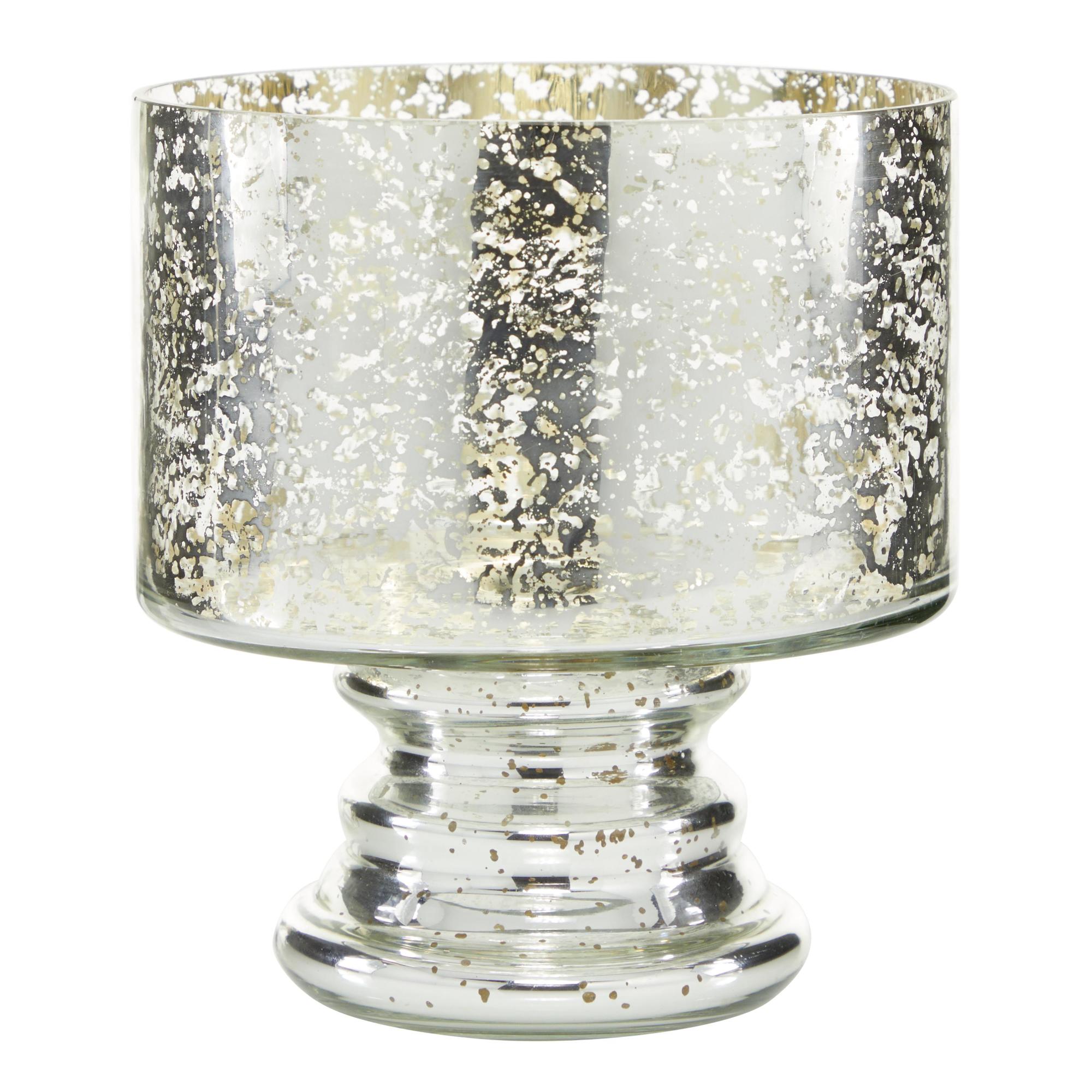 •The contemporary hurricane candle holder for table features a molded and glass body that is given a faux mercury finish for added appeal