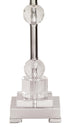 •This polished accent lamp for table features a slim cylindrical stem with orb embellishments, a round double-layered shade, and a square crystal base