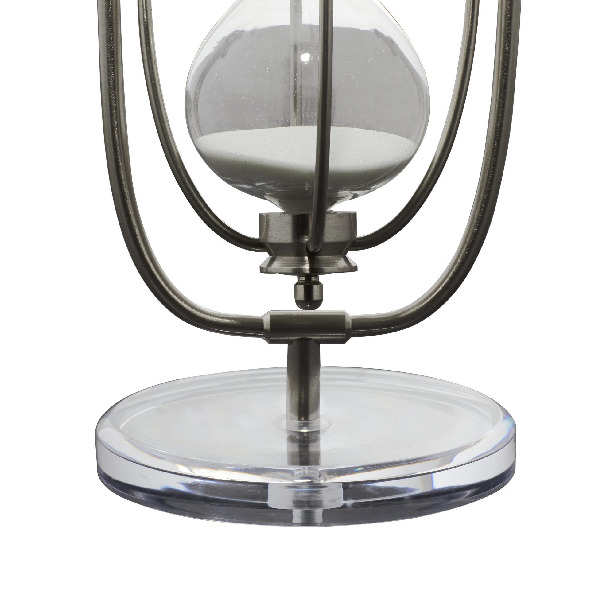 This swiveling hourglass sand timer is ideal for vintage, glam, and eclectic-themed living spaces. Designed with felt or rubber stoppers at the base that prevent scratching furniture and table tops, as well as sliding around. This item ships in 1 carton. Glass timer makes a great gift for any occasion. Suitable for indoor use only. This item ships fully assembled in one piece. Glam style.
