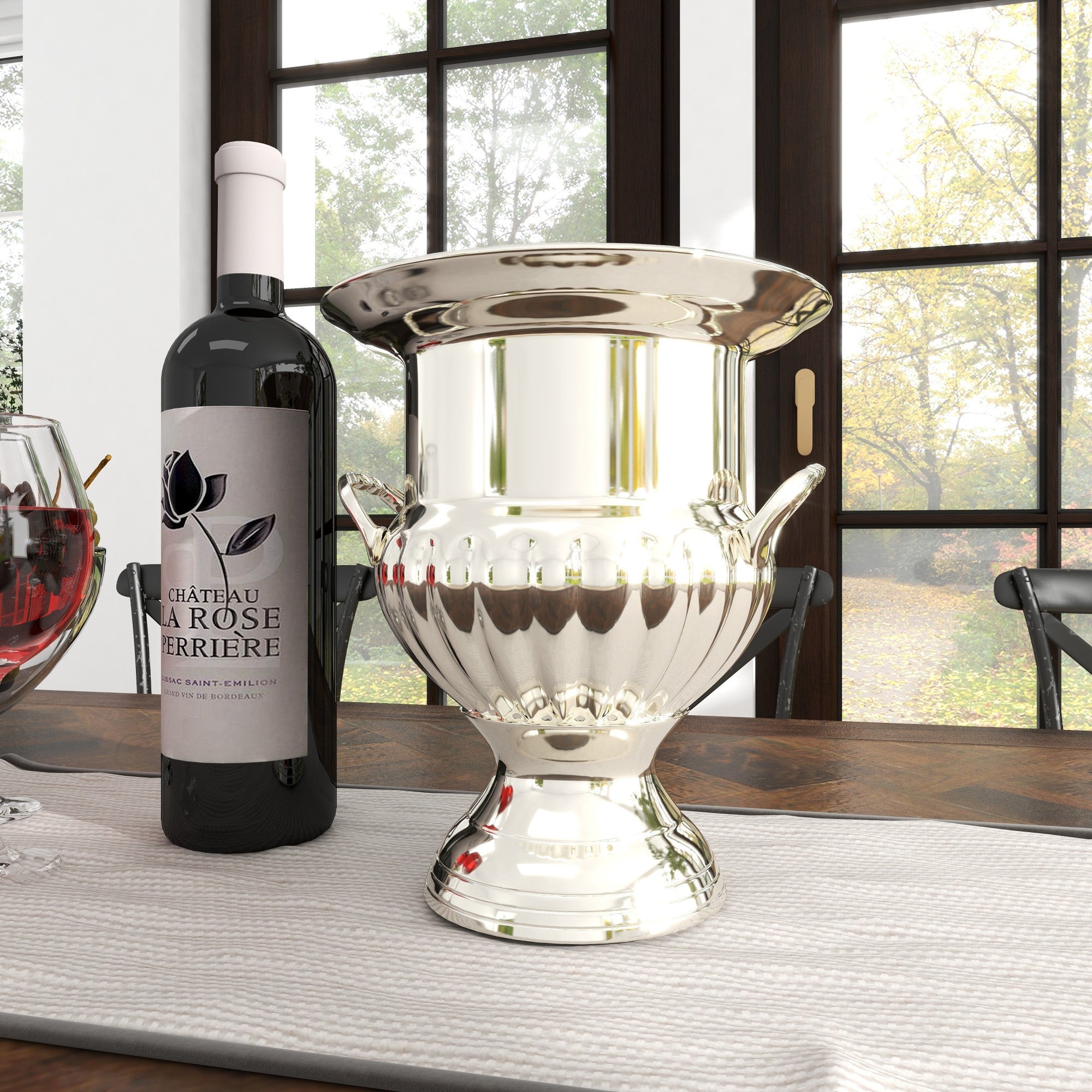 •Featuring an amphora urn shape with two side handles, the metal ice bucket stands out with its unique design