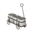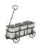 •The metal material in this farmhouse planter for outdoor plants is shaped into squares that rest in a welded metal wagon frame, with a handle screwed in at the front
