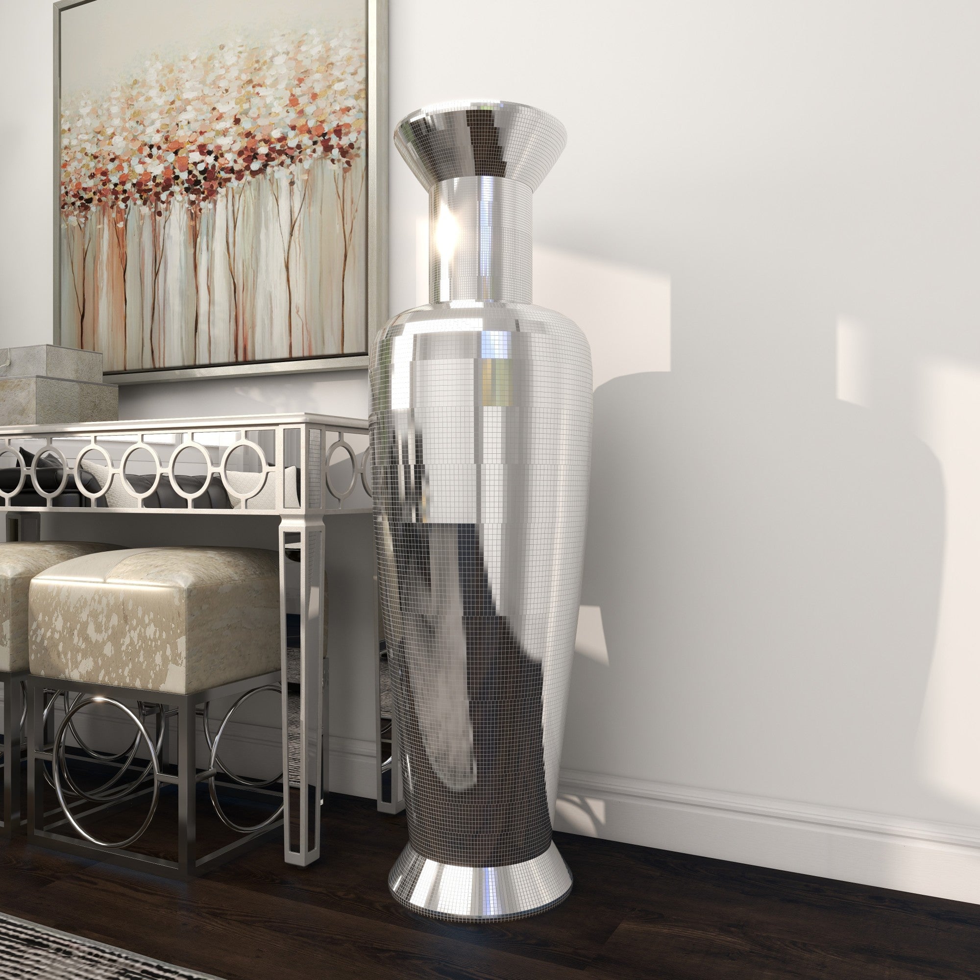 Silver Polystone Tall Floor Decorative Vase with Mosaic Mirror Inlay