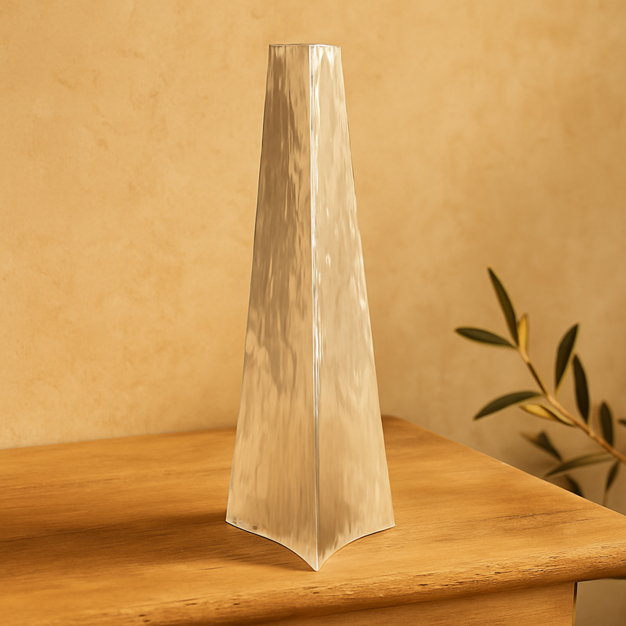 •Its unique triangular shape makes the glossy vase for dried flowers a standout piece in any setting