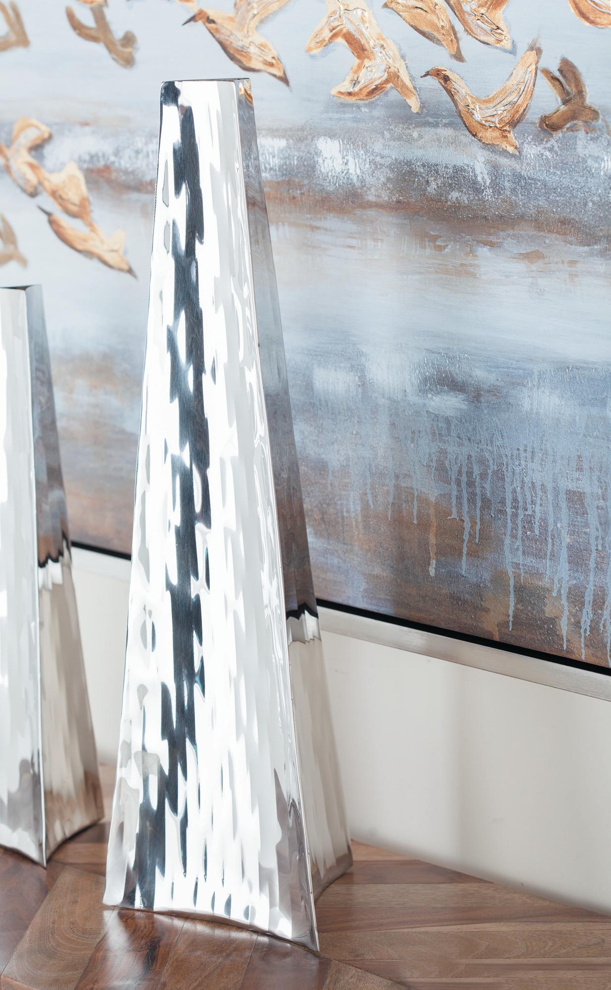 Silver Stainless Steel Metal Hammered Decorative Vase