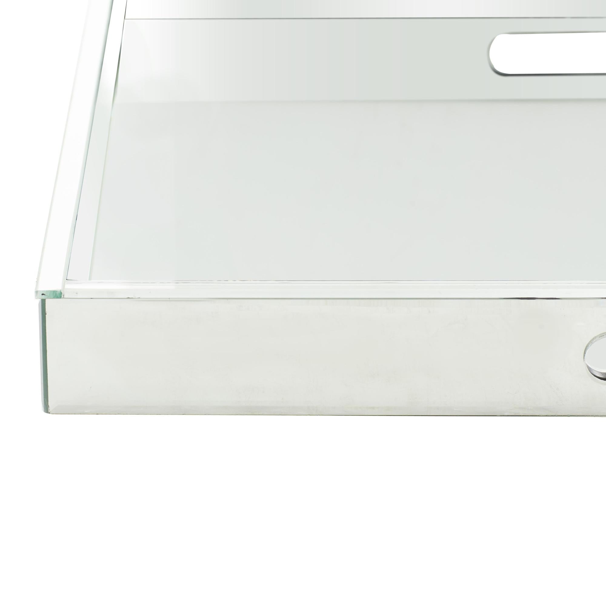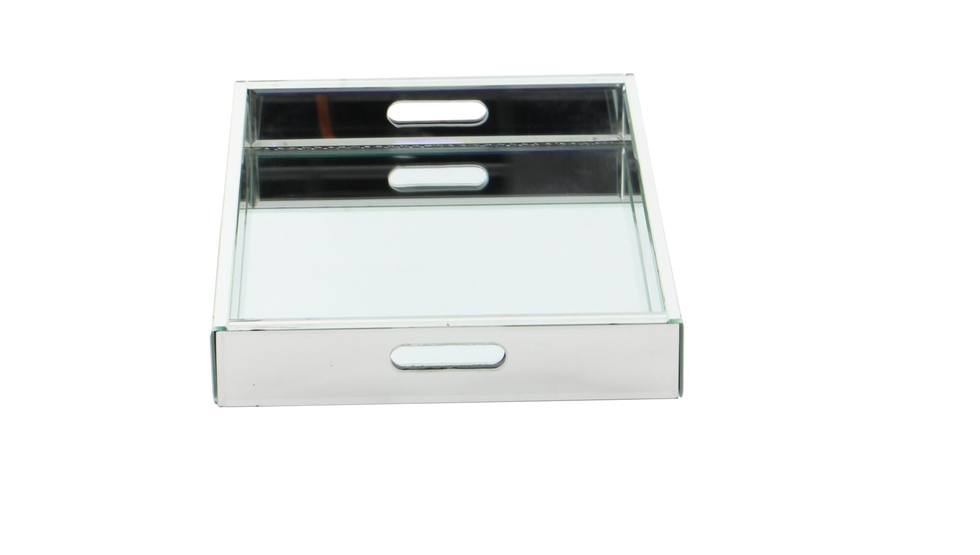 •The MDF tray flaunts smooth mirror inlays and cut-out side handles, adding both style and functionality