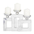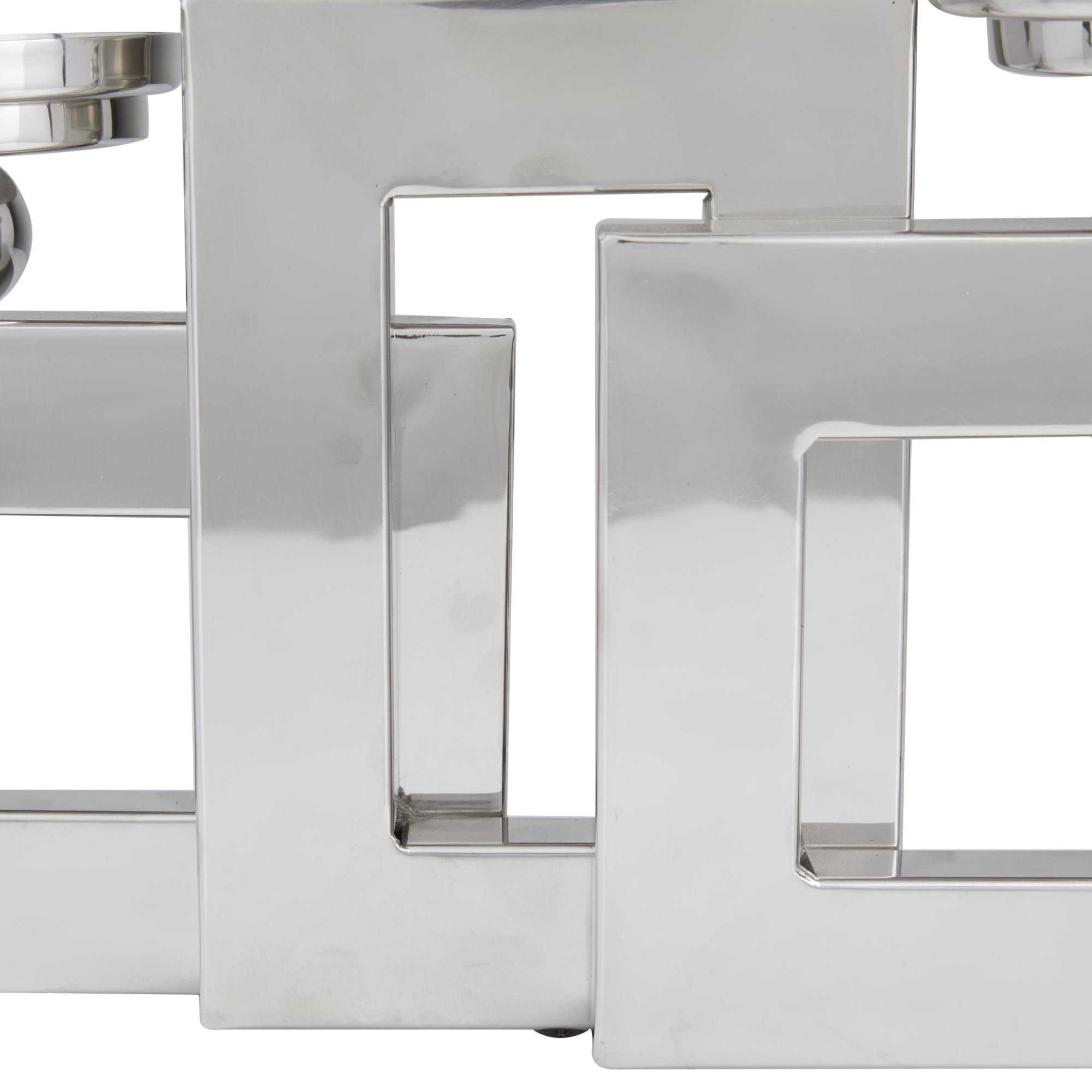 •Stainless steel candle holder features round tiered candle plates mounted on ball accents and rectangular bases with an open design, making it a standout piece