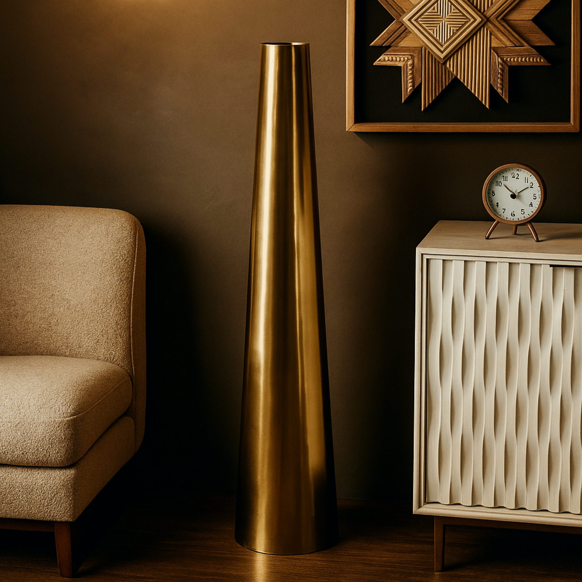 •Shiny vase for dried flowers has a sleek conical shape and smooth design that adds to its minimalist yet glamorous appeal, making it an excellent choice for those looking to make a bold style statement