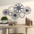 •Iron wall decor features distinctive compass-style accents in overlapping circular frames, beautifully rendered in contrasting shades of and white