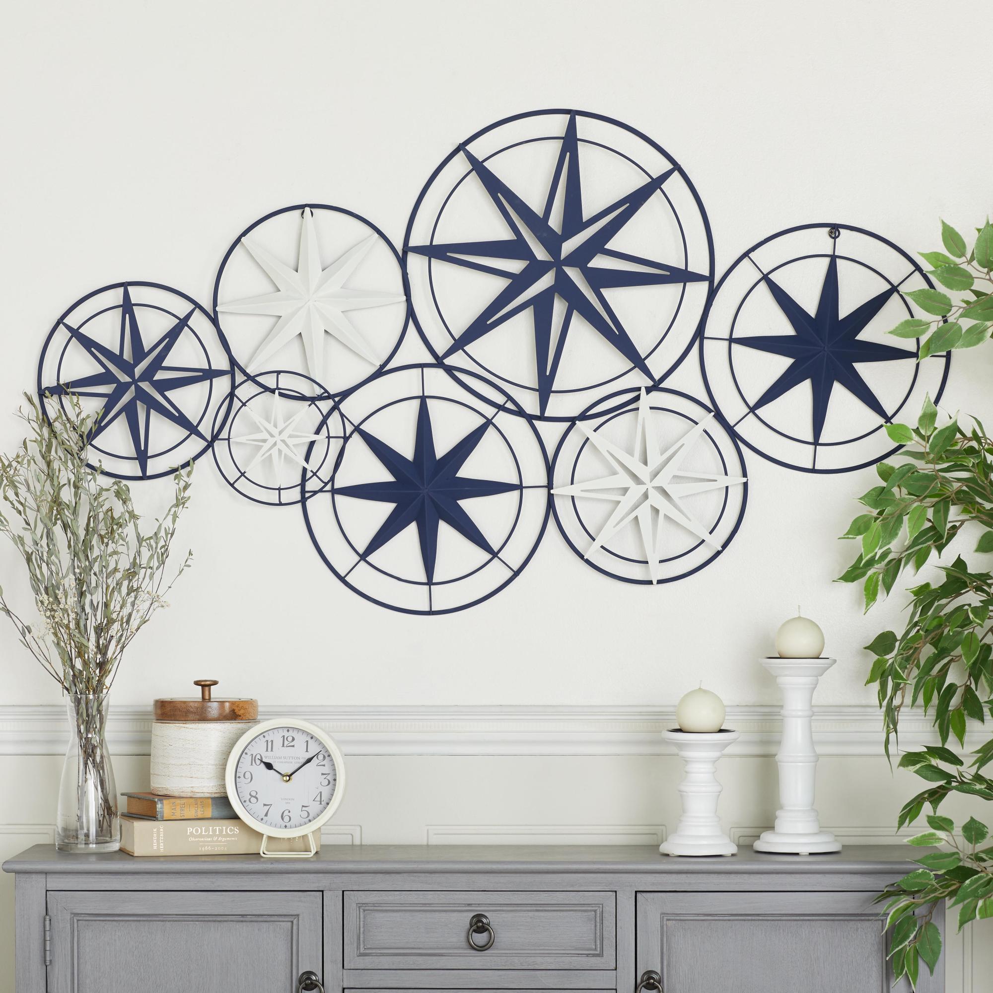 Star Blue Metal Indoor Outdoor Cutout Compass Home Wall Decor with Overlapping Frames