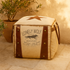 •The canvas pouf features genuine leather loop handles on each side for easy transport, adding both style and functionality