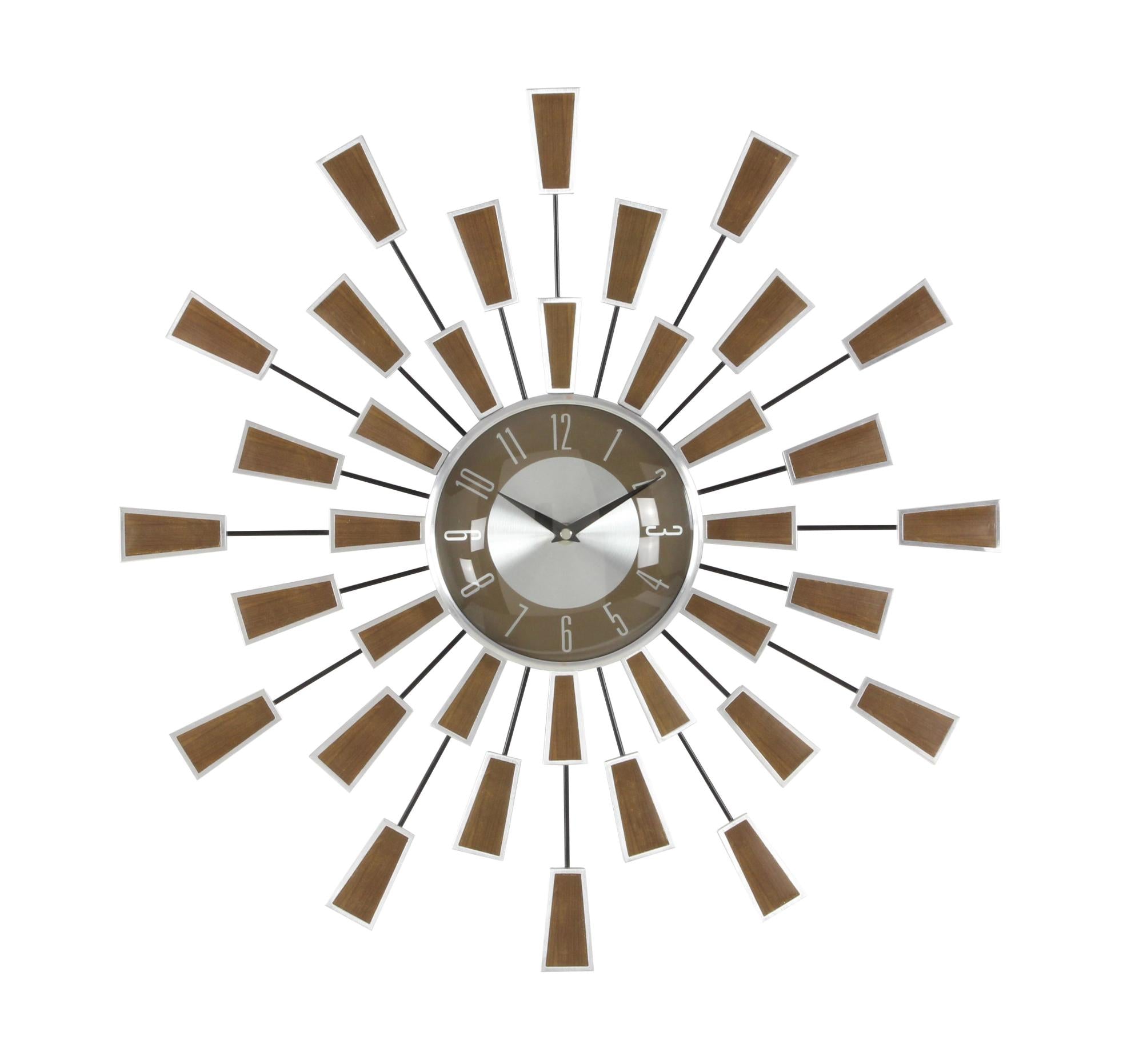 Starburst Brown Metal Starburst Decorative Wall Clock with Silver Accents