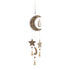 •This satin windchime for home showcases half-moon, sun, and star shapes adorned with intricate patterns along with round beads and cone-shaped bells