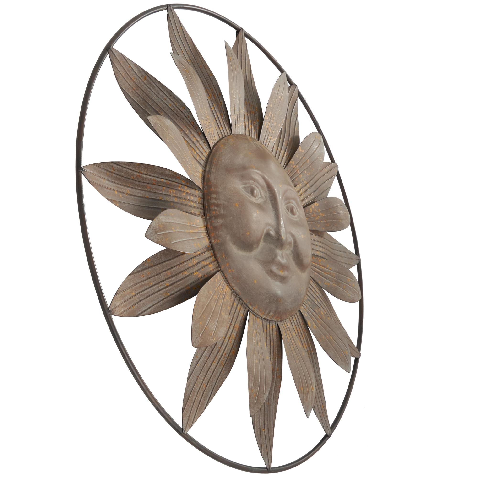 Sun Brown Metal Indoor Outdoor Home Wall Decor with Distressed Copper Like Finish