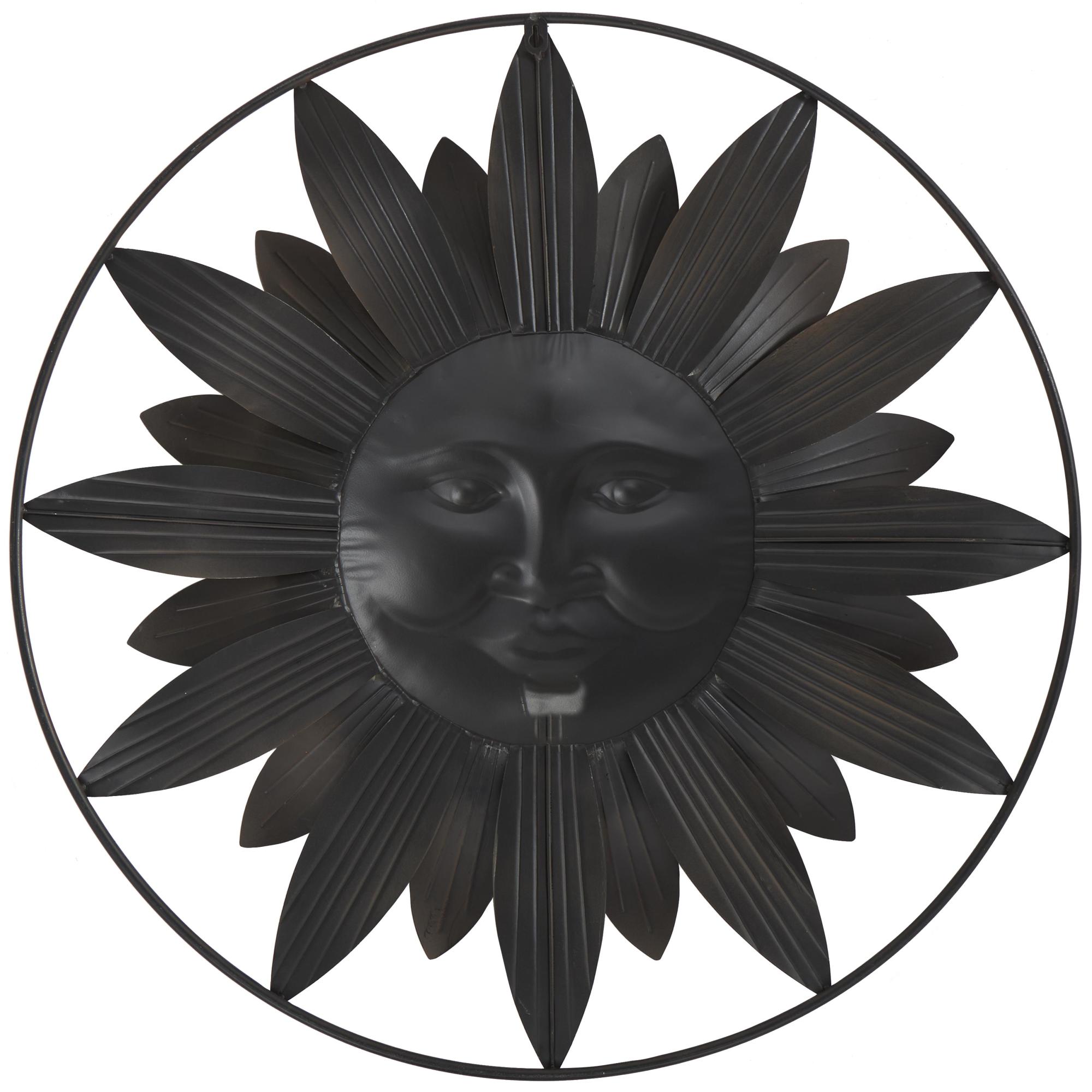 •Iron wall decor features wavy sun rays surrounding a smiling sun face, complete with detailed dimensional facial features