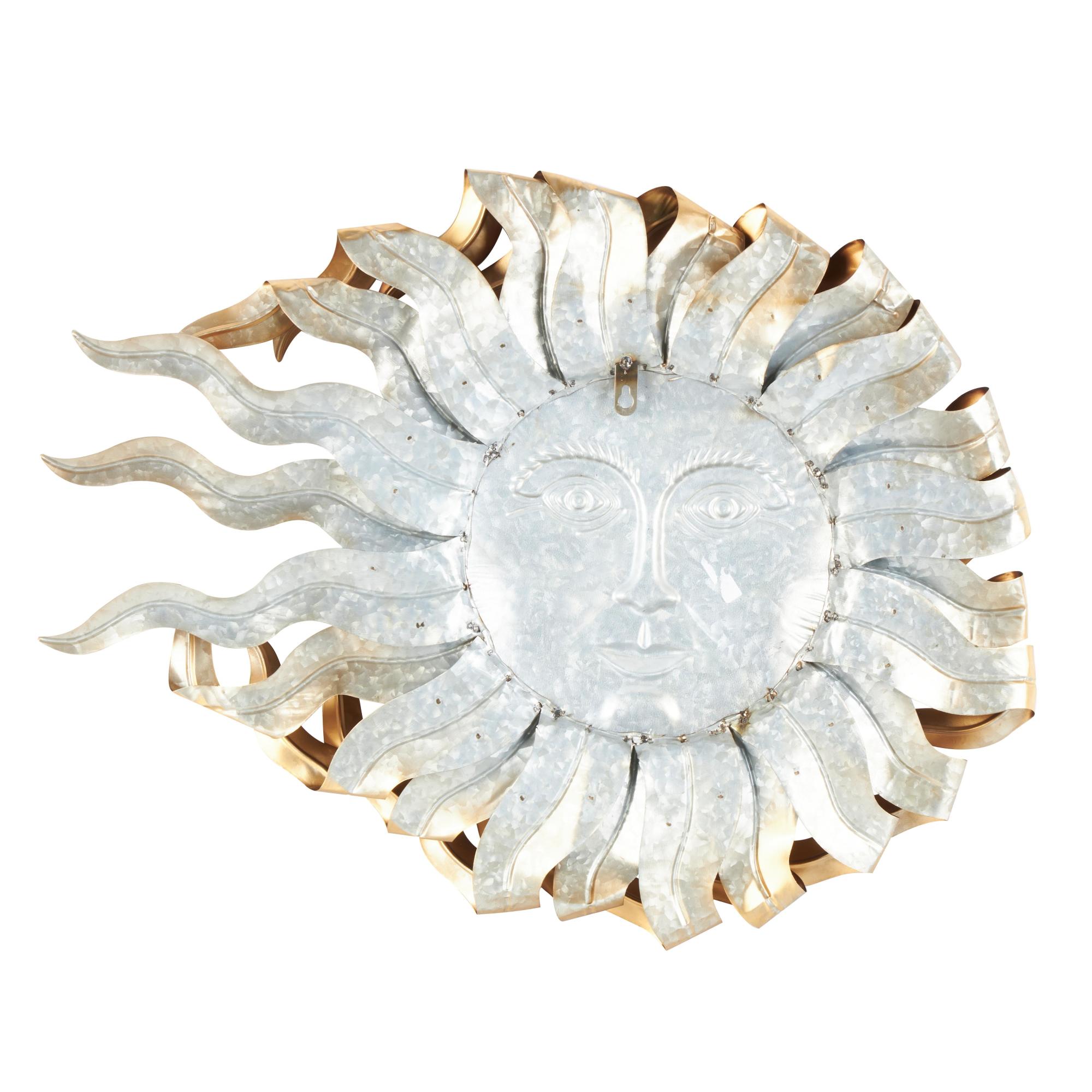 •This iron wall decor features a golden sun face at the center, surrounded by folded wavy rays, creating a dynamic and captivating focal point for your wall