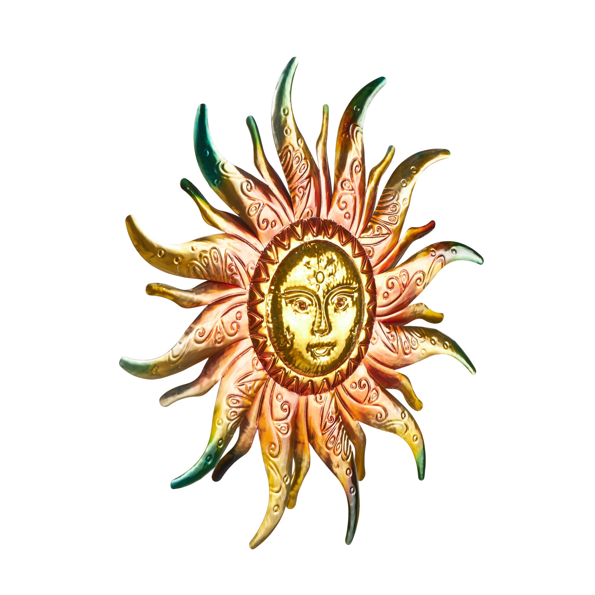 •This eclectic room wall decor is molded from stainless steel material into a sun figure with eye catching colors applied