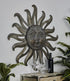 •Iron wall decor is characterized by embossed details forming a jolly face at the center of the sun, adding a touch of whimsy to any space