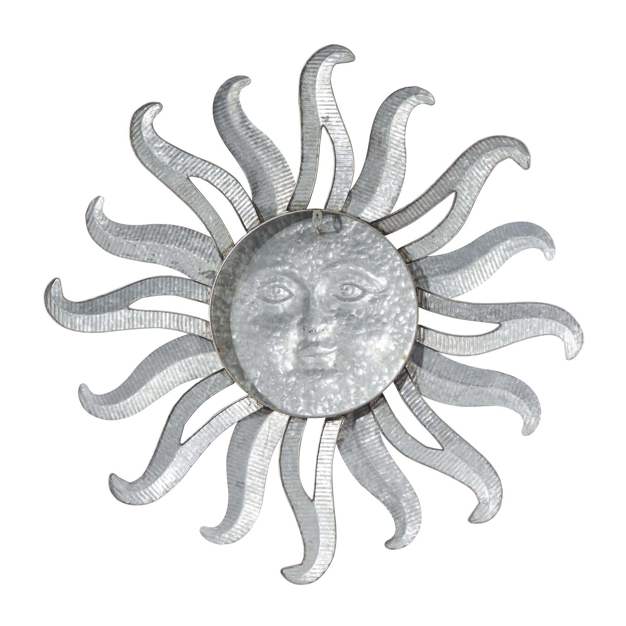 Sun Gray Metal Indoor Outdoor Face Home Wall Decor with Ribbed Detailing