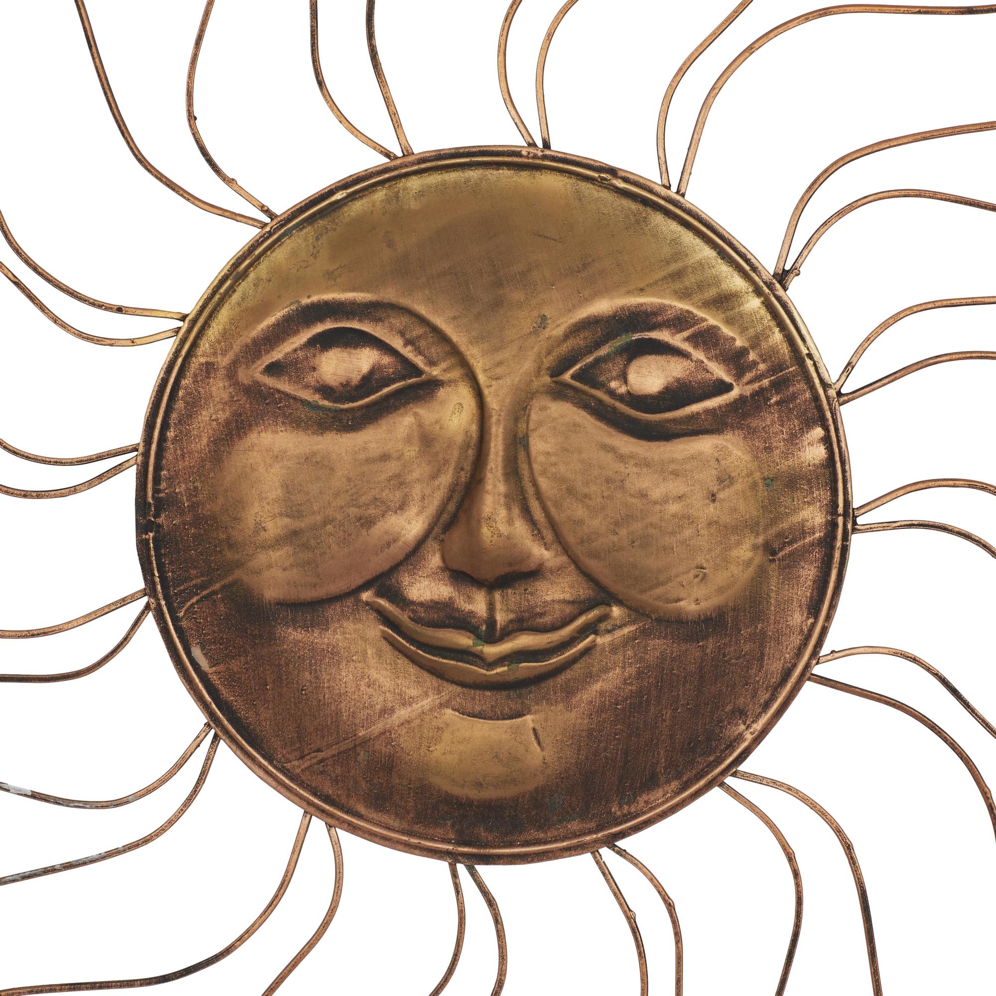 •Iron wall decor features a charming smiling sun with wire rays that add a playful flare for a celestial appeal