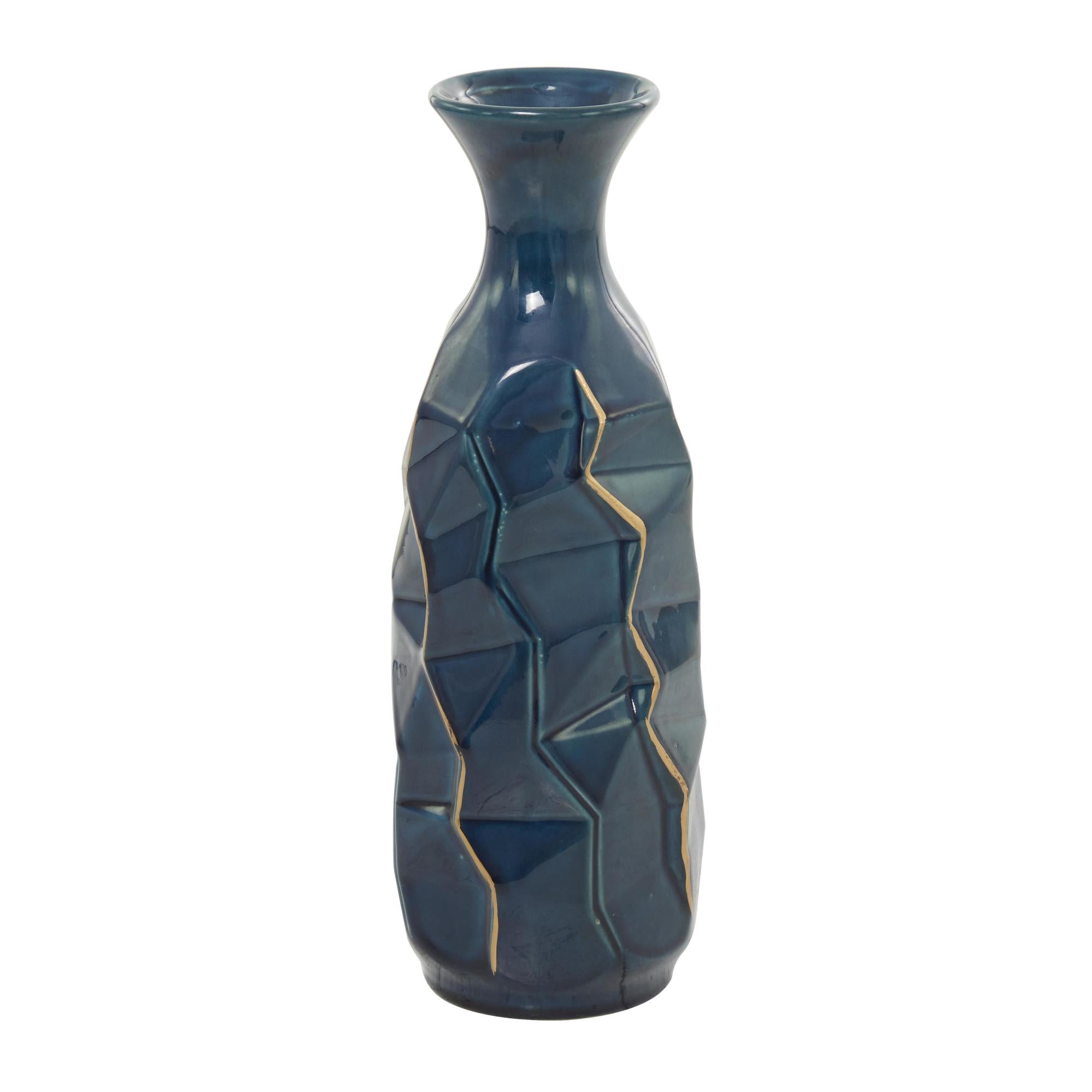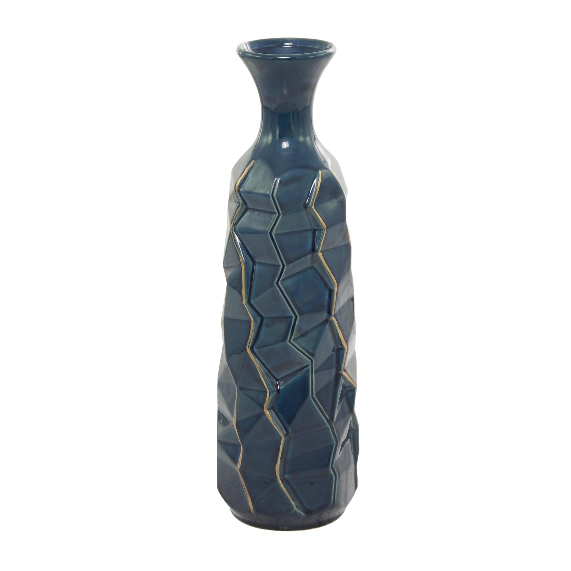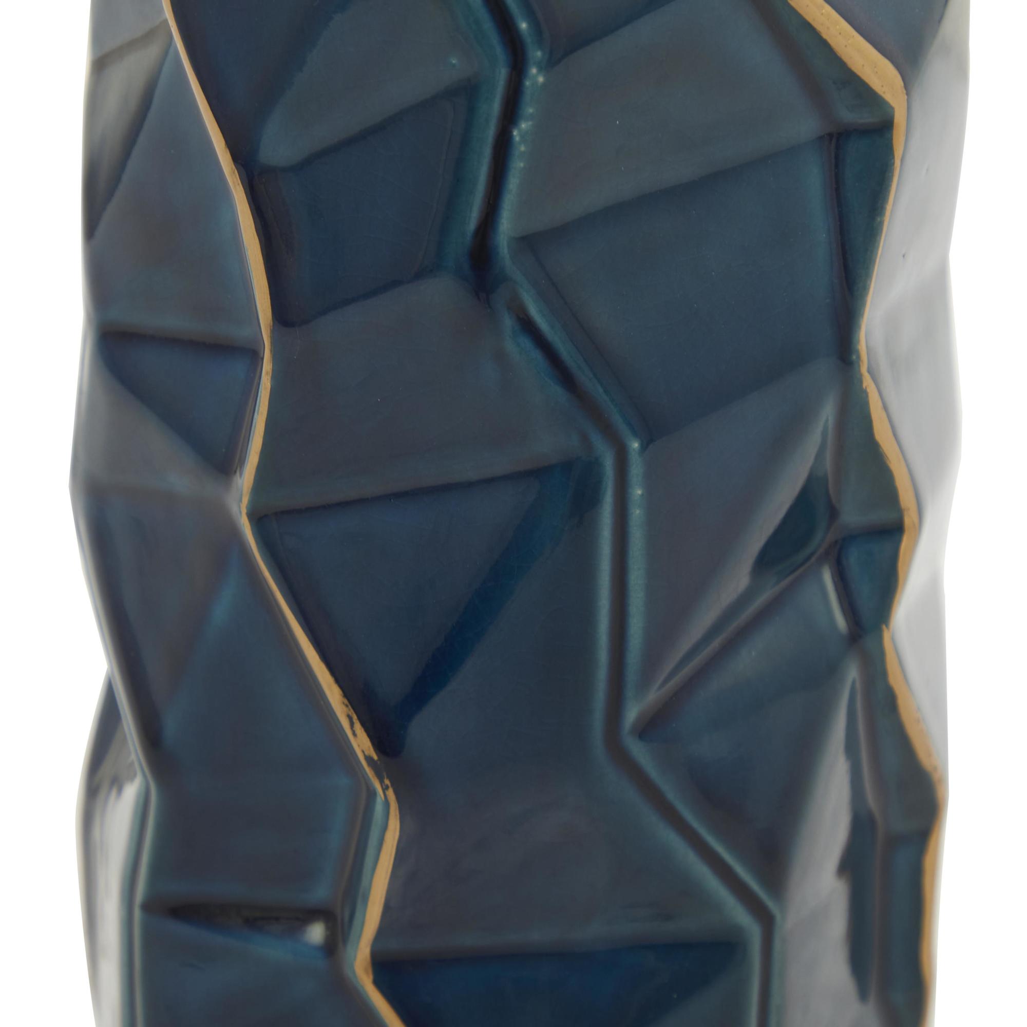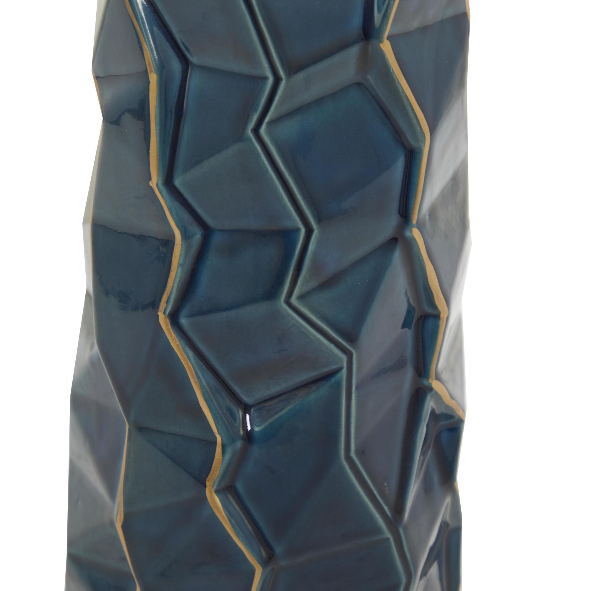 Teal Ceramic Geometric Floor Decorative Vase with Gold Accents