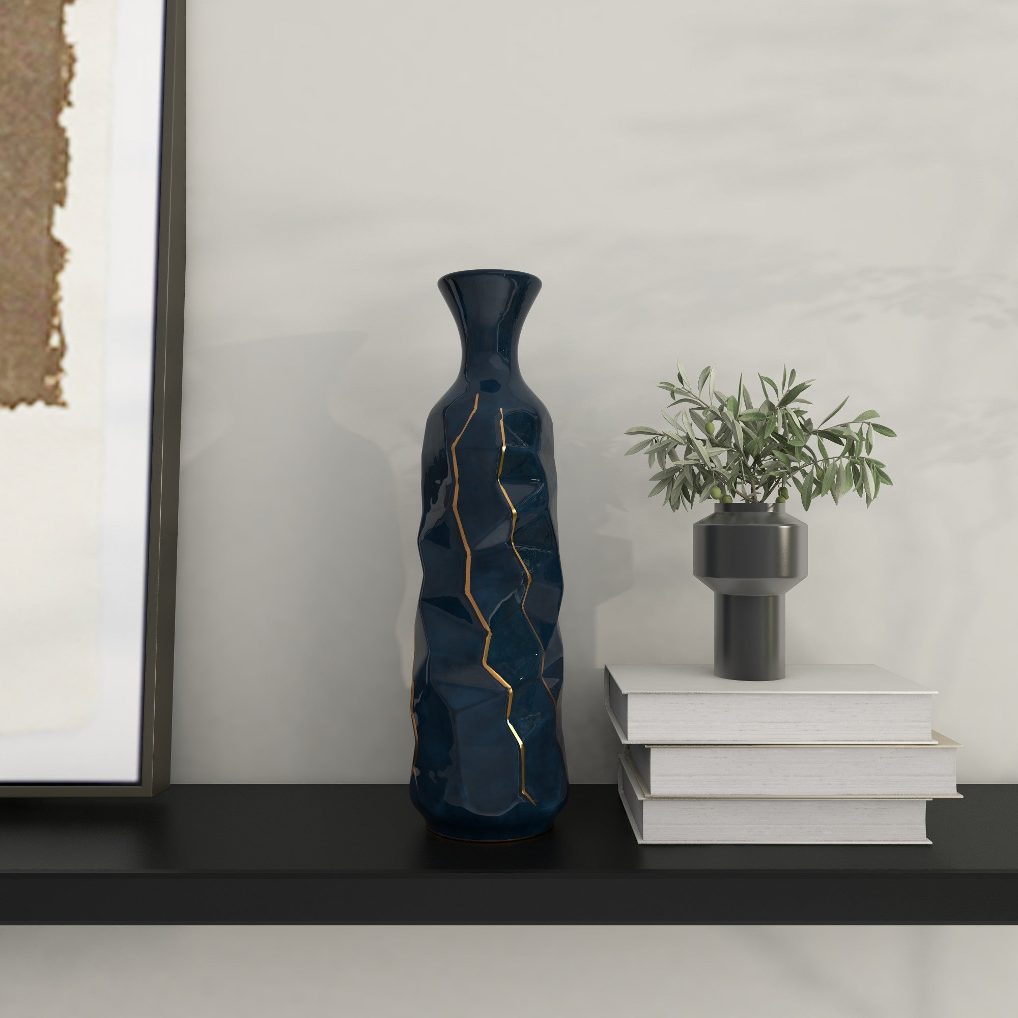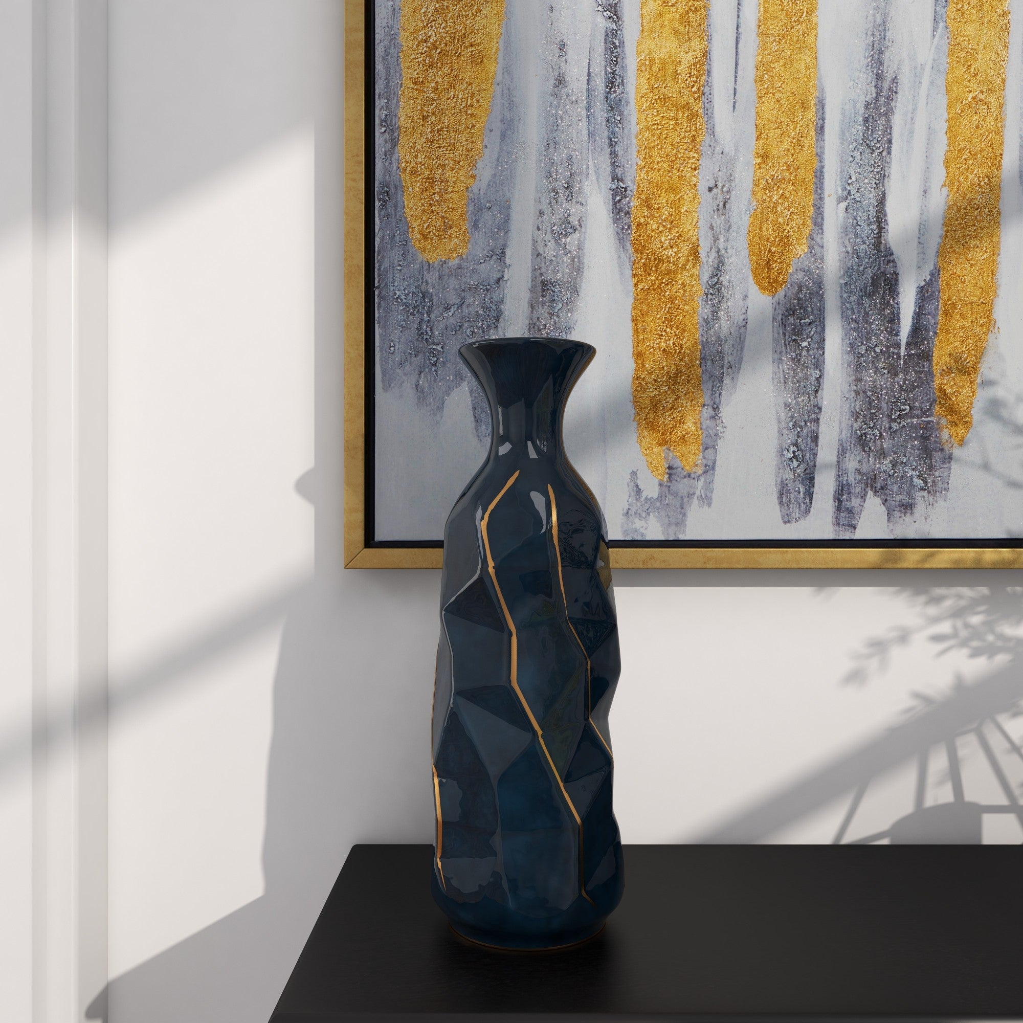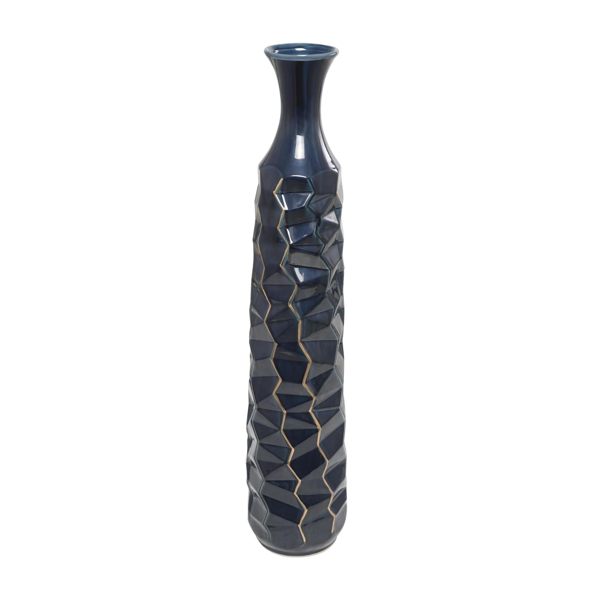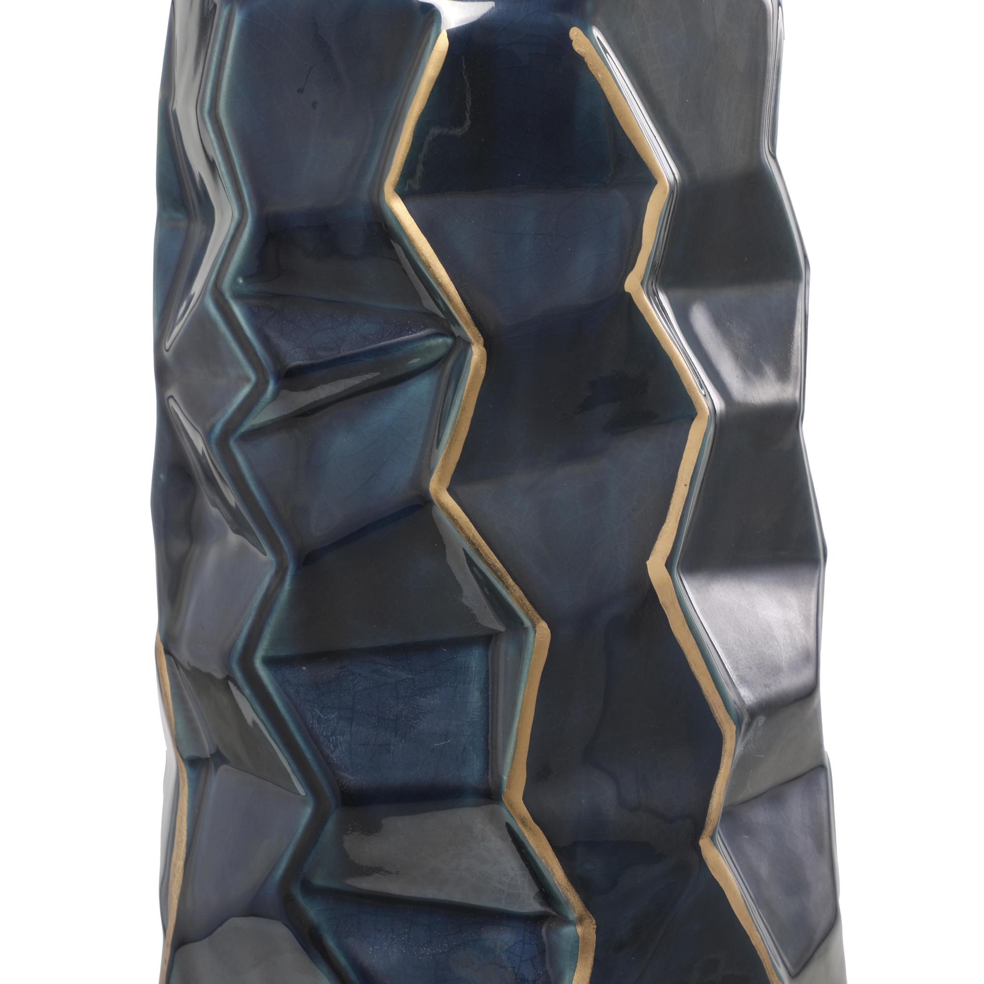 Teal Ceramic Geometric Floor Decorative Vase with Gold Accents