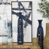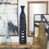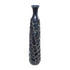 •The polished vase for faux flowers has a sleek round shape with geometric patterns that complements its tall structure beautifully