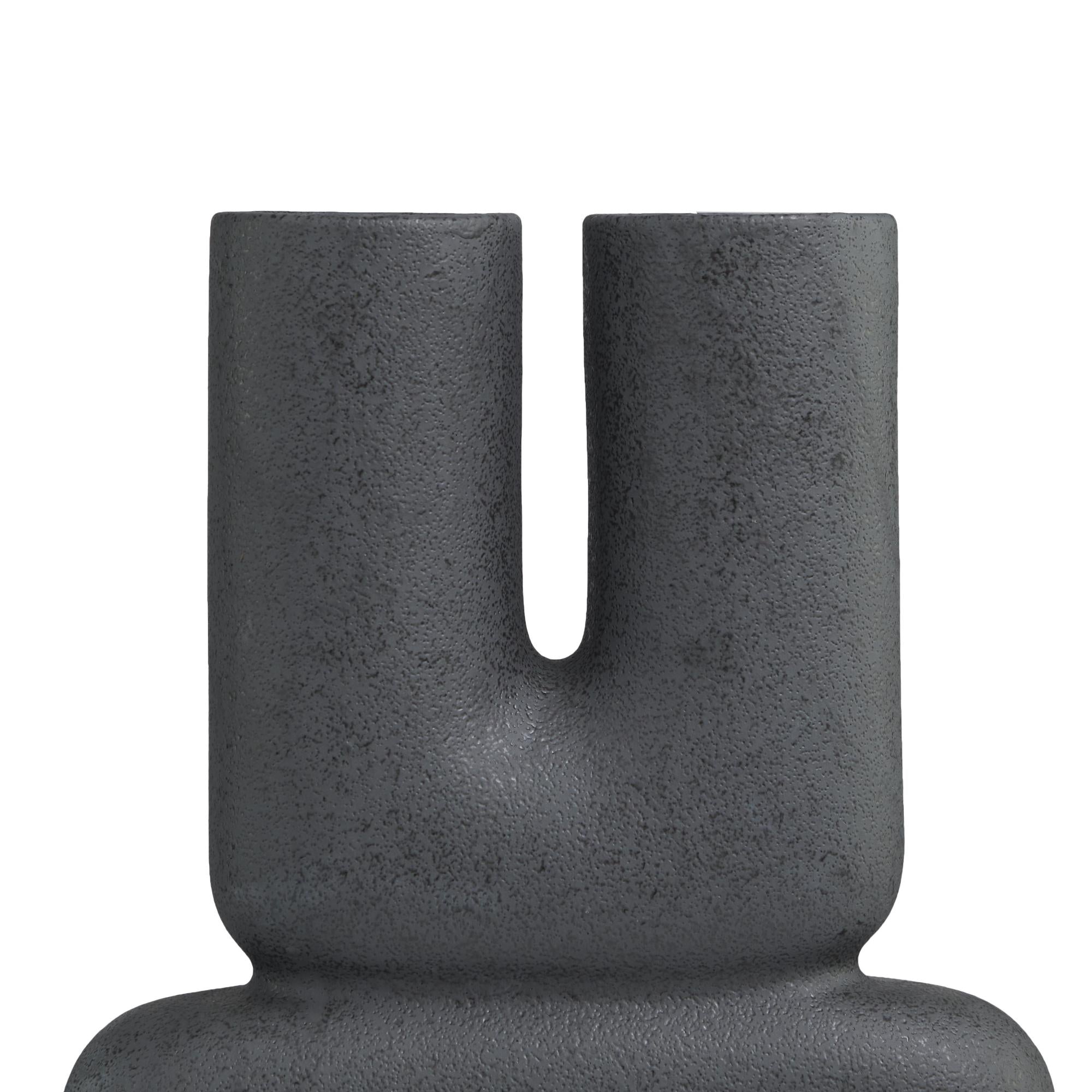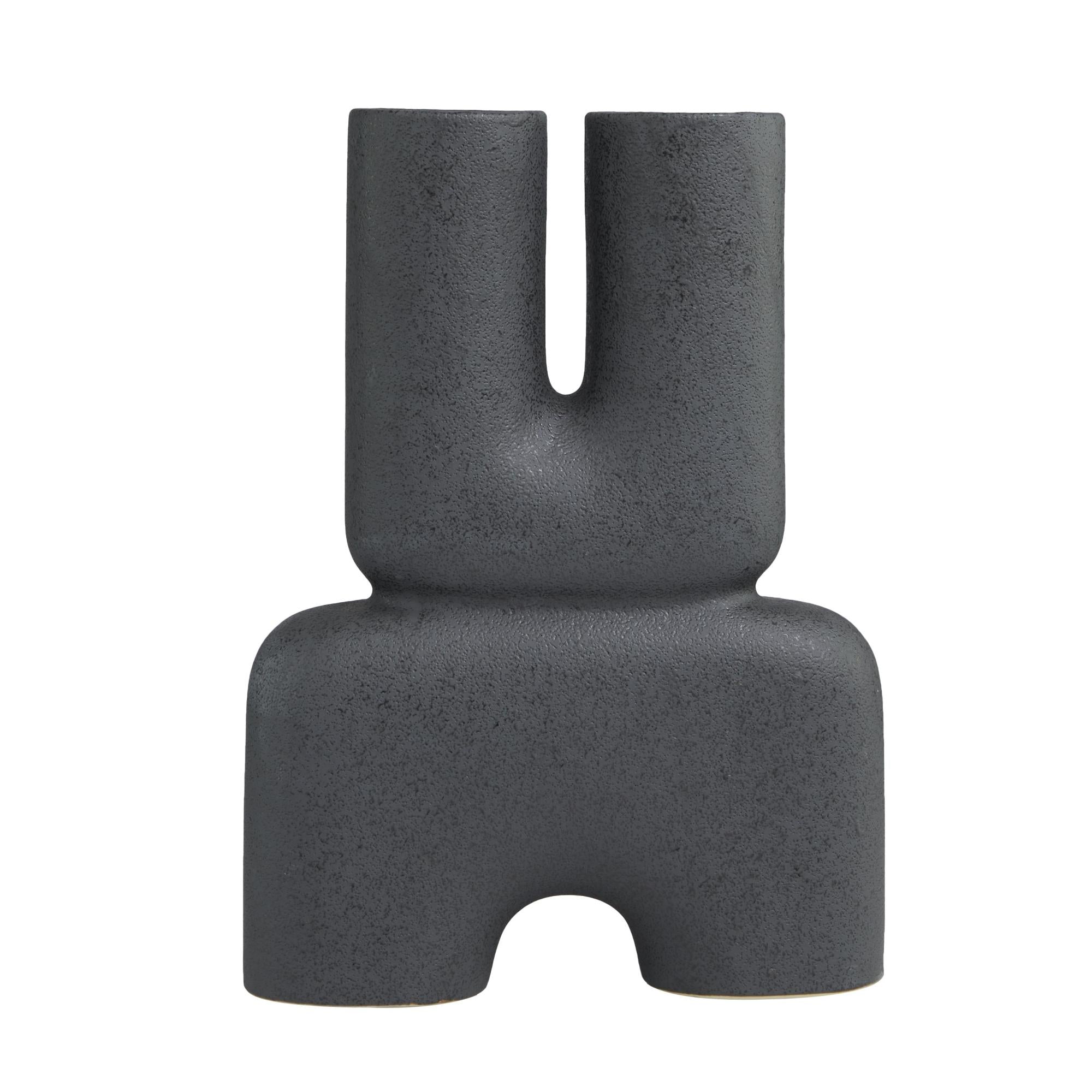 •Sandstone vase for dried flowers features a U-shaped top with two openings and an N-shaped bottom with two resting points