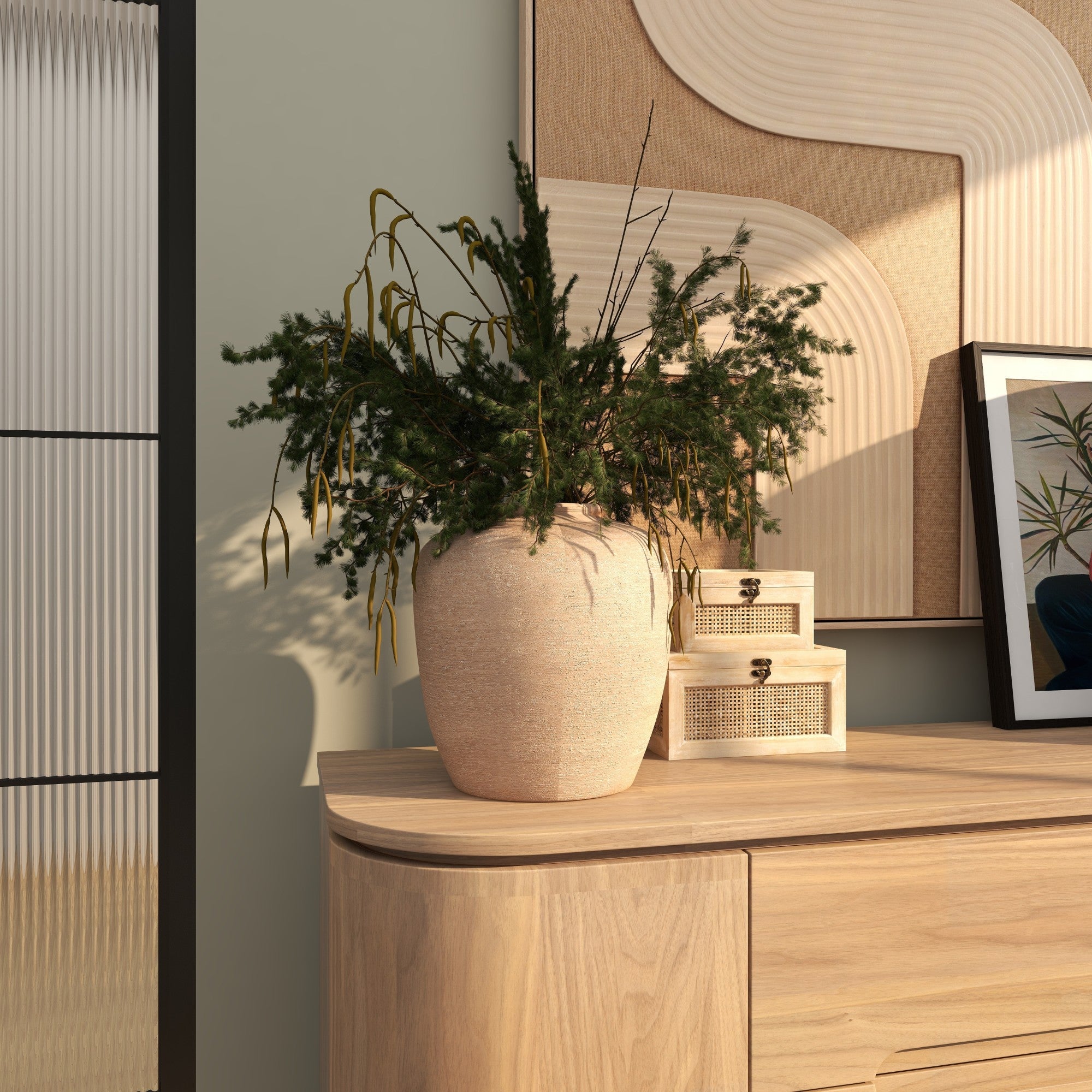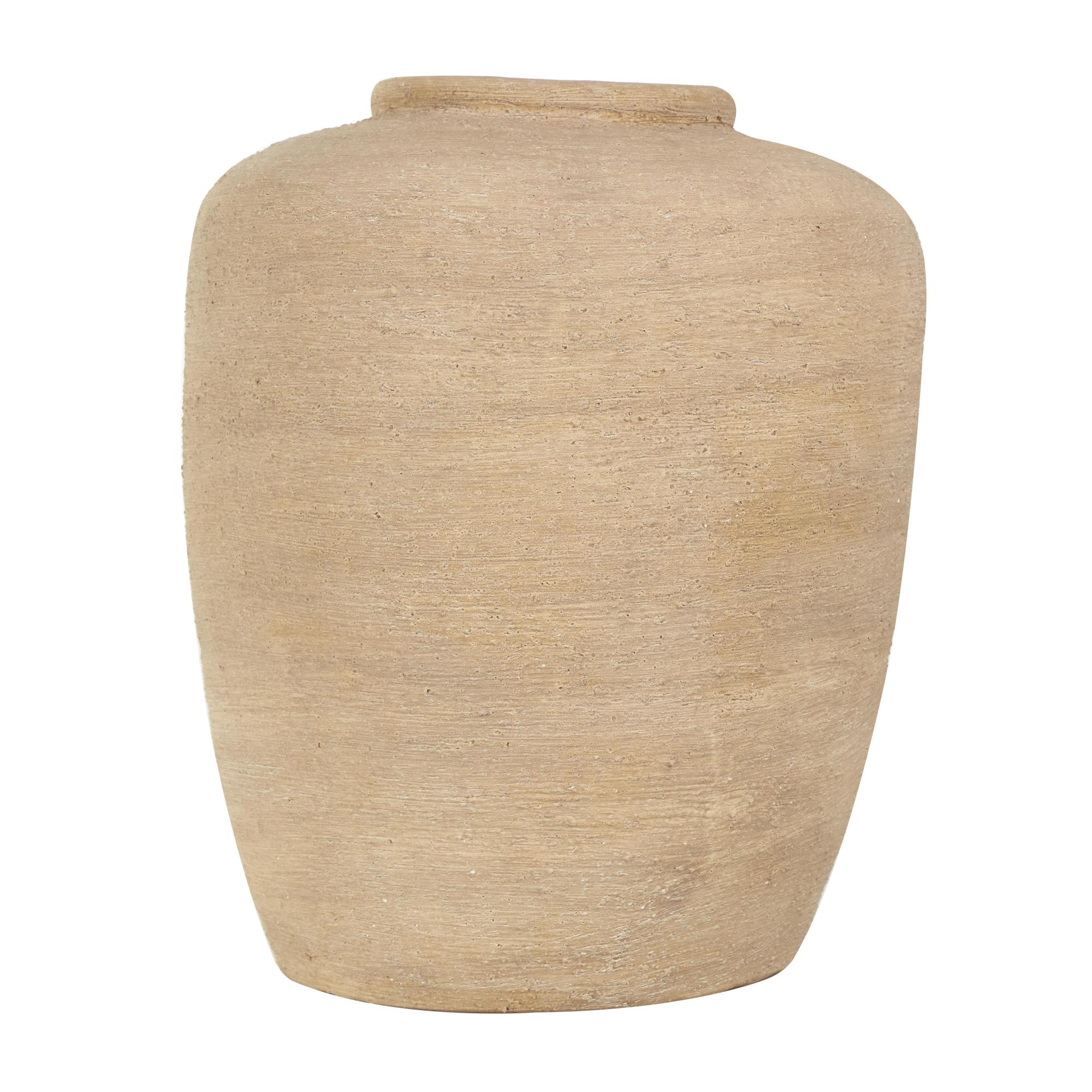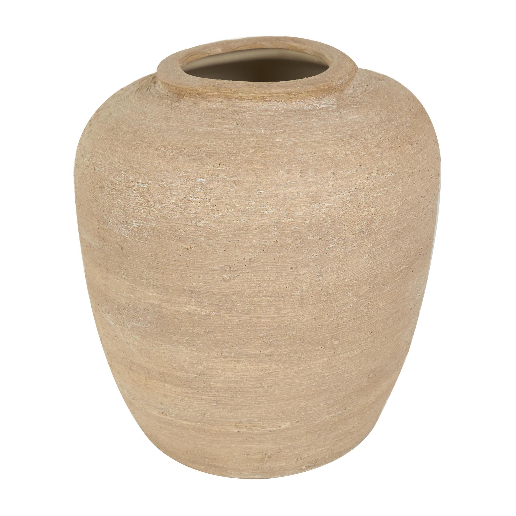 Beige Ceramic Wide Textured Decorative Vase