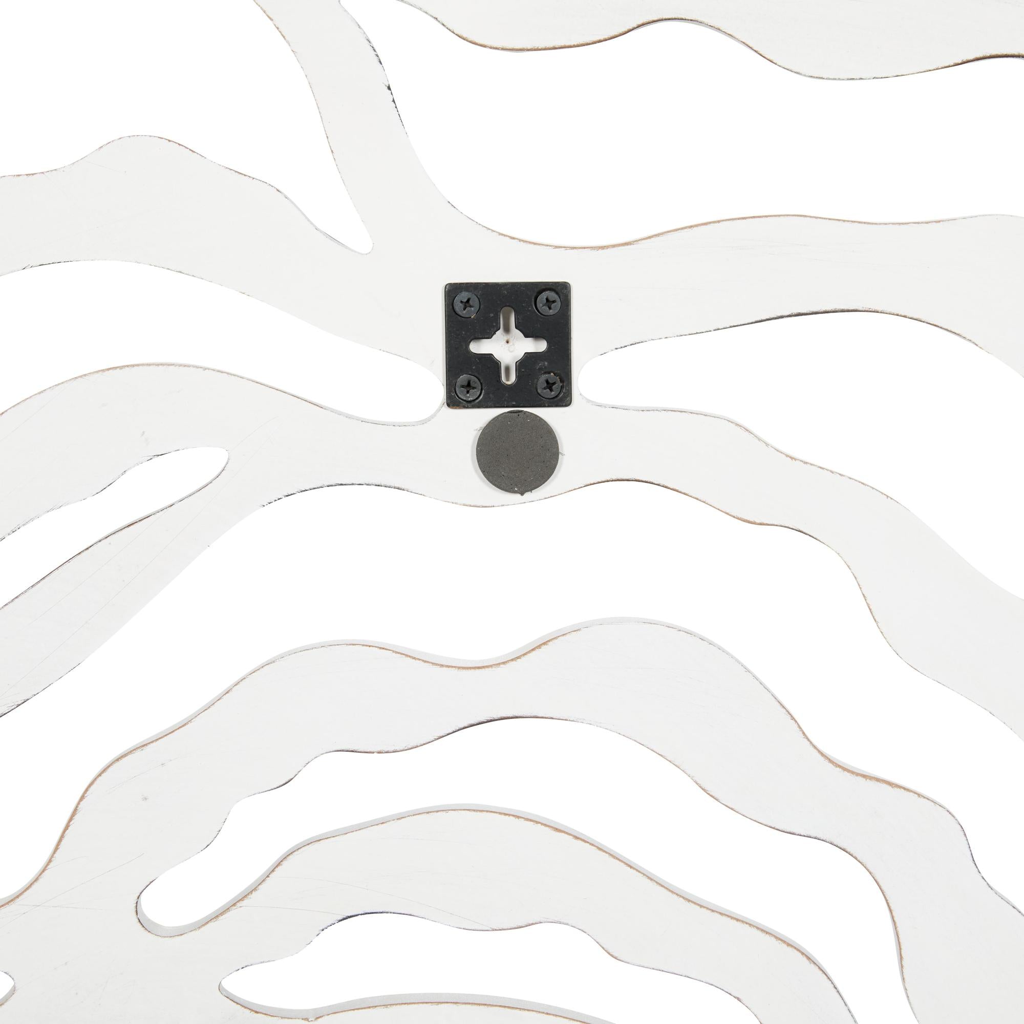 •The MDF wall mirror features an abstract, cut-out design that pairs well with other bright, organic-shaped decor