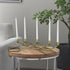 •The stainless-steel candelabra is uniquely designed to create a warm, inviting ambiance in the home with its five candle holders