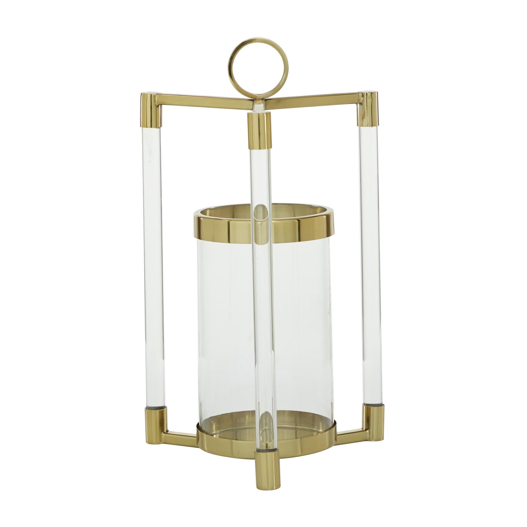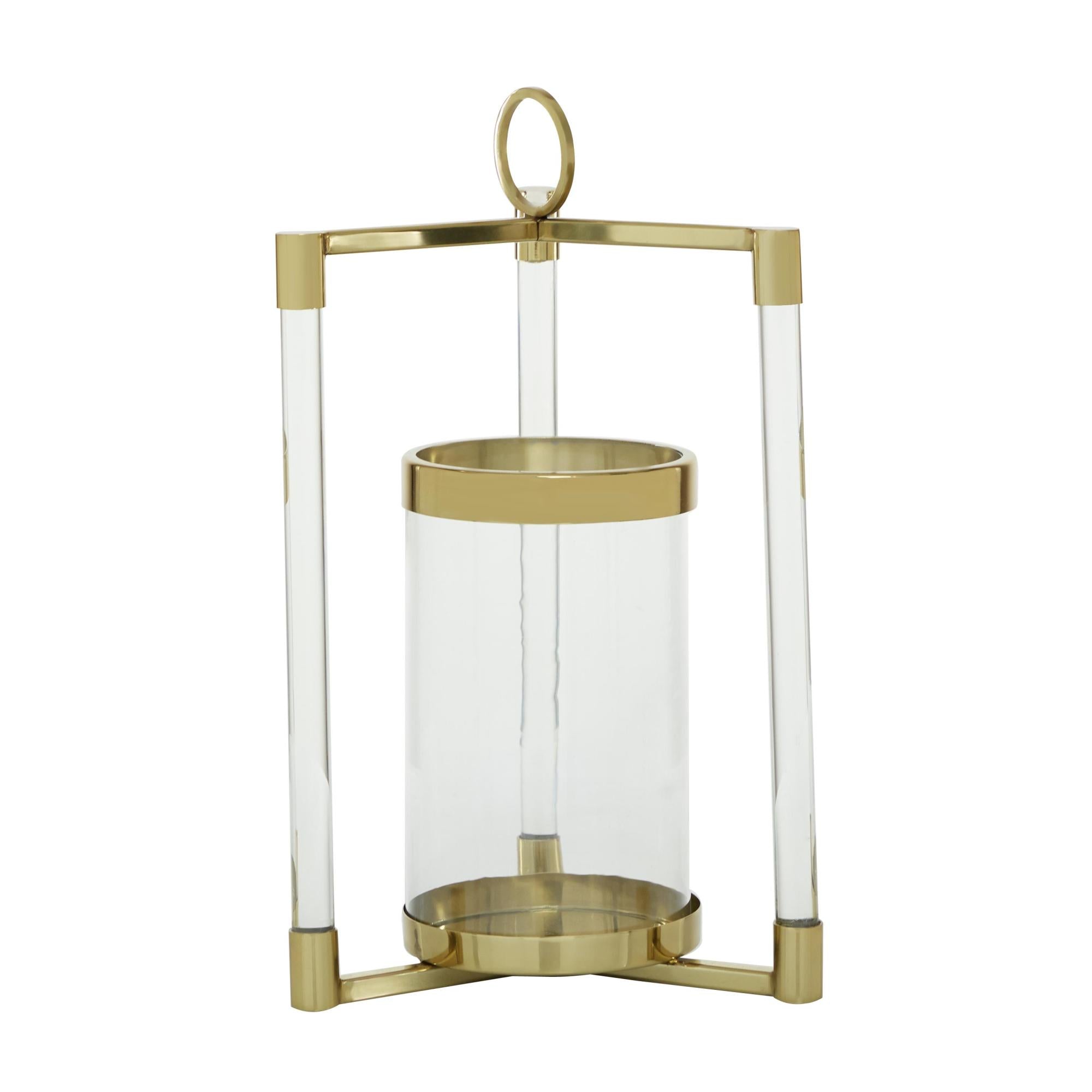 Gold Stainless Steel Metal Decorative Indoor Outdoor Candle Lantern with Acrylic Accents