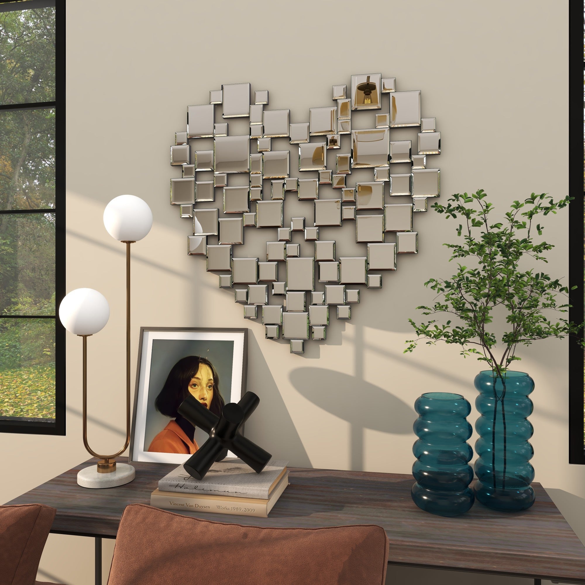 Heart Silver Glass Geometric Mosaic Room Wall Mirror