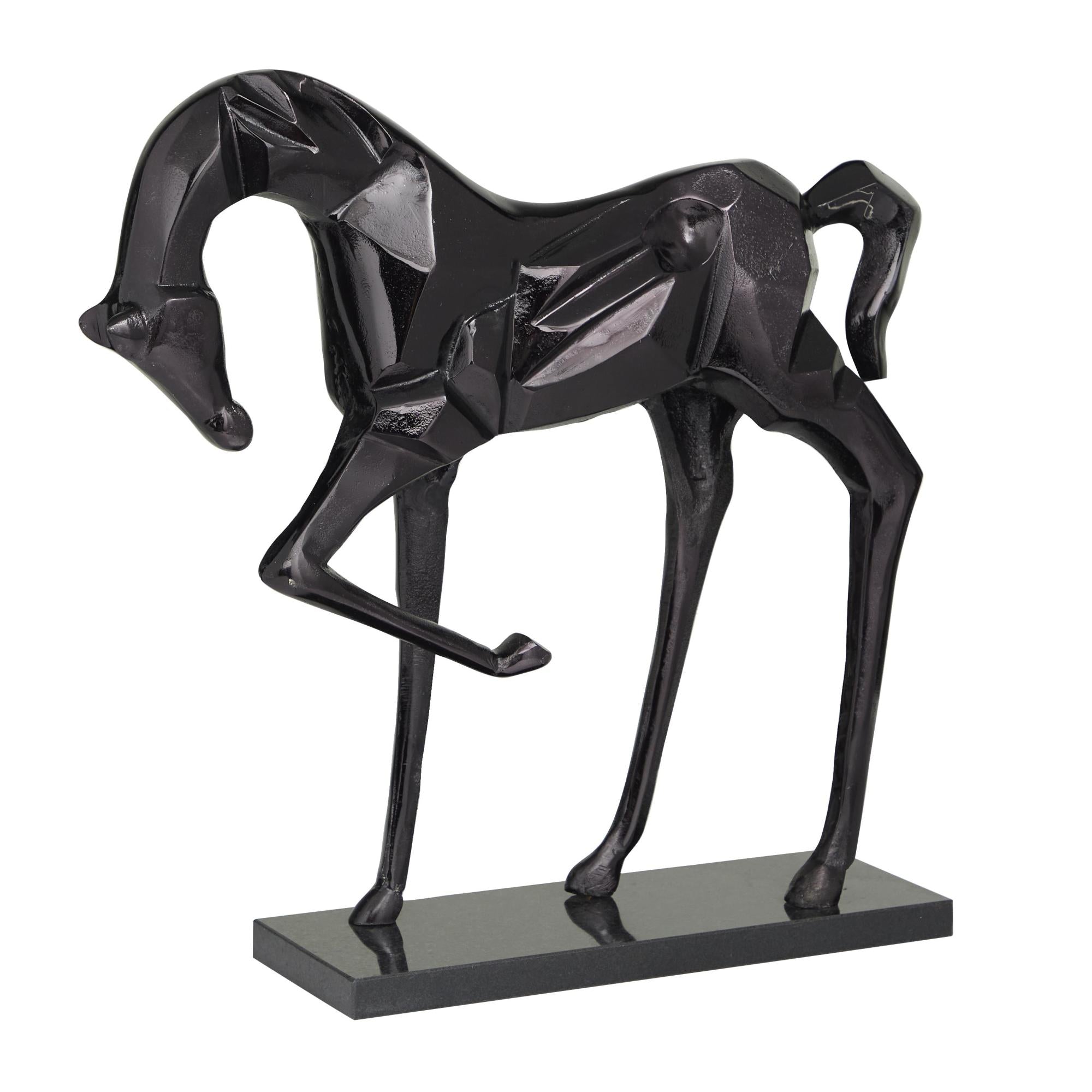 •Polished home decor figurine displays an abstract geometric horse figure standing proudly on its rectangular base