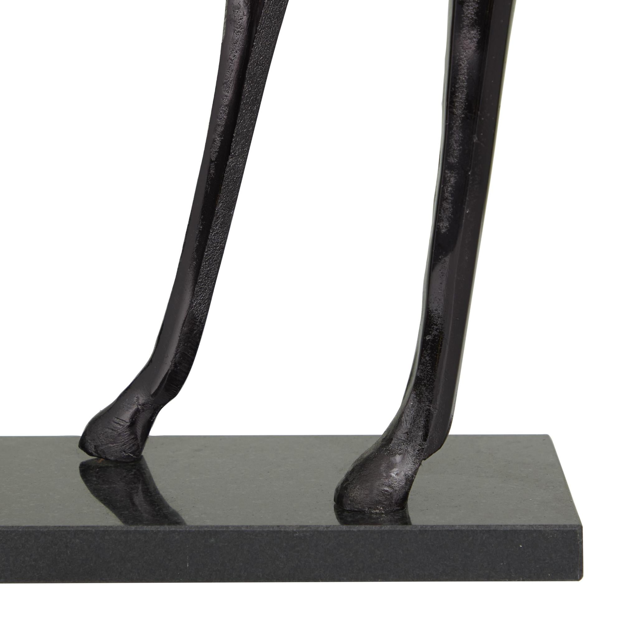 •Contemporary accent statue is meticulously sculpted from molded aluminum to capture an eye-catching equine form and placed on a marble base