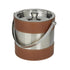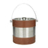•The remarkable exterior of this stainless steel wine bucket cooler showcases an authentic leather covered top and bottom body and a cover lid with a knob handle at the center