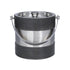 •Stainless steel is bent and molded to form this bucket and accented with thick leather straps