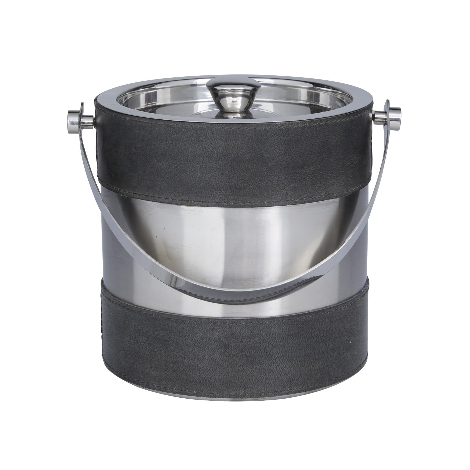 Showoff your bottle beverage collection in the most elegant way with this wine holder. Made from sturdy and long lasting material featuring real leather for a chic yet durable design. Bring out this leather and steel wine chiller bucket on your bar area and entertainment room to enjoy cool and refreshing drinks anytime. This item ships in 1 carton. Leather ice bucket makes a great gift for any occasion. Due to the handmade nature of this item, no two will be alike, there will be slight differences in shape, size, and color. Suitable for indoor use only. This item ships fully assembled in one piece. Leather and hair on hide are natural products, and therefore no two will be alike. There may slight variations in pattern, natural blemishes, colors, and overall aesthetic of the product. Maximum weight limit is 10 lbs. Made in India. This is a single bucket. Modern style. Grayice bucket can hold a single average wine bottle.