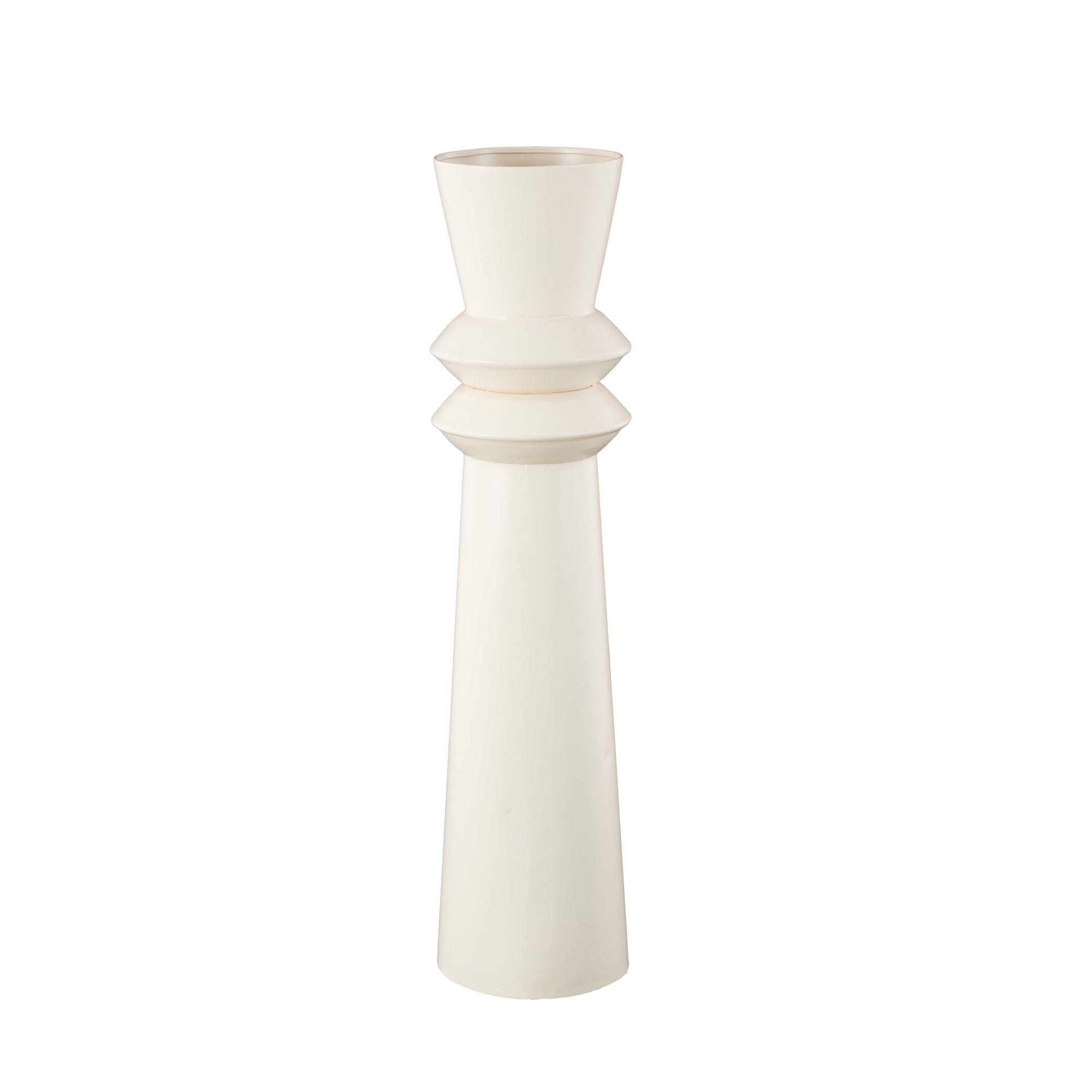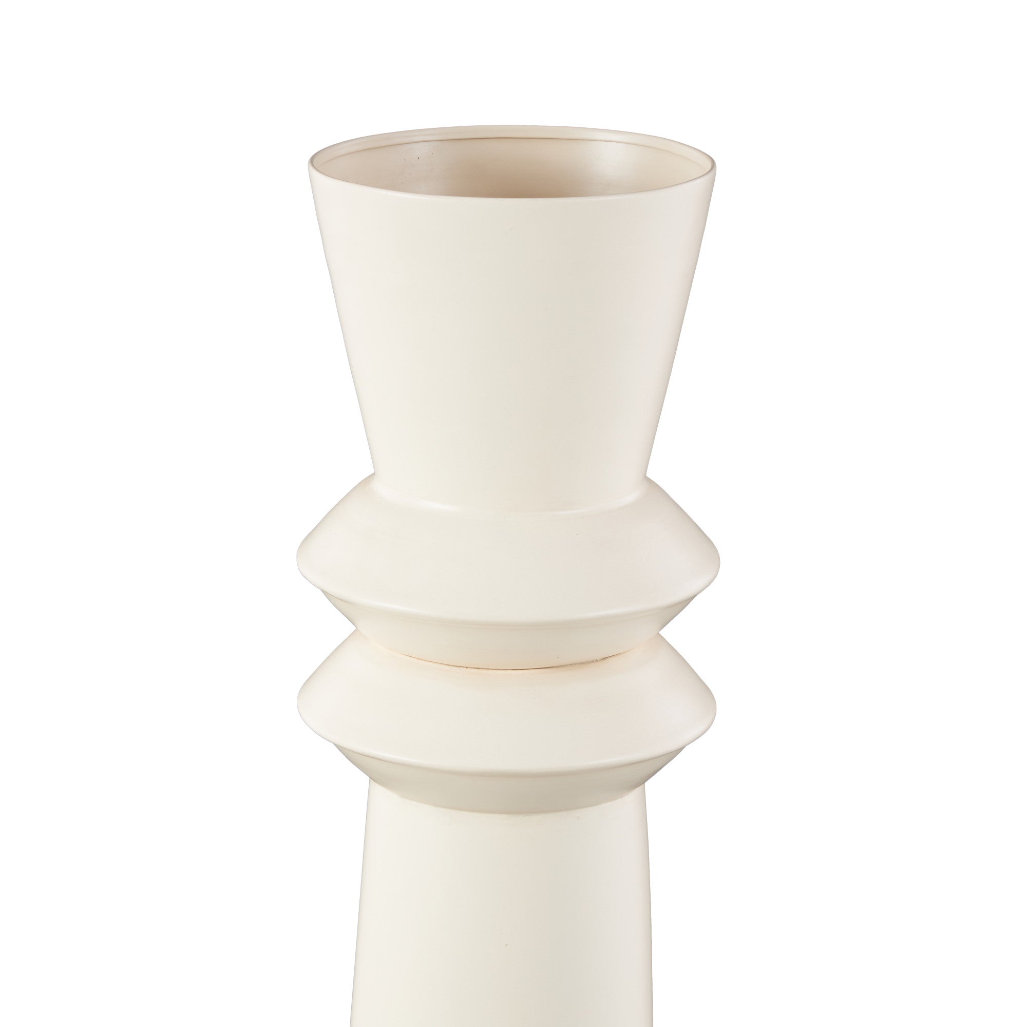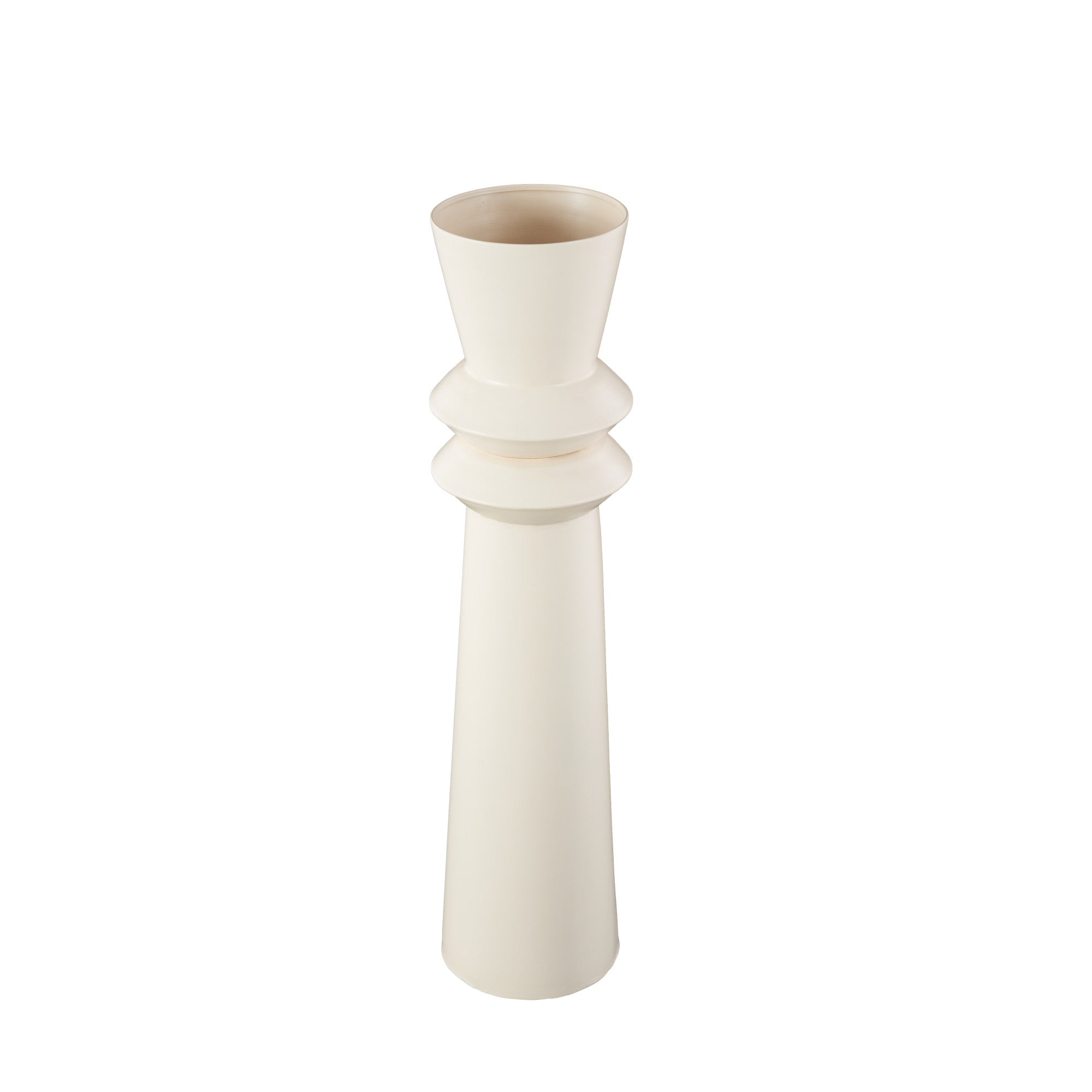 •Matte vase for dried flowers features a unique fluted style center between two cone-shaped ends for an eye-catching design