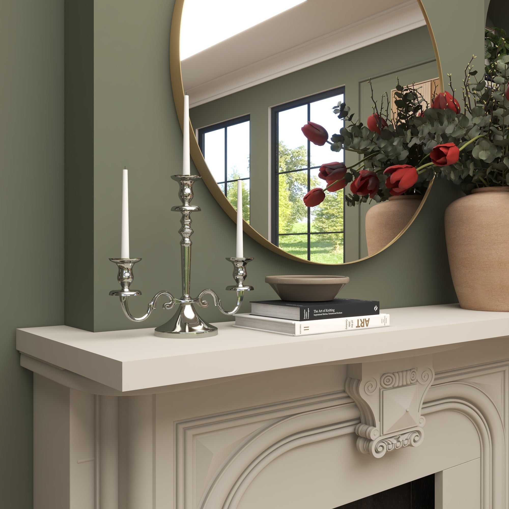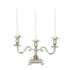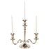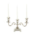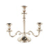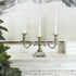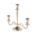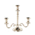 •The aluminum candelabra features scrolling arms attached to a round base, allowing for the display of three candles at different levels