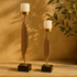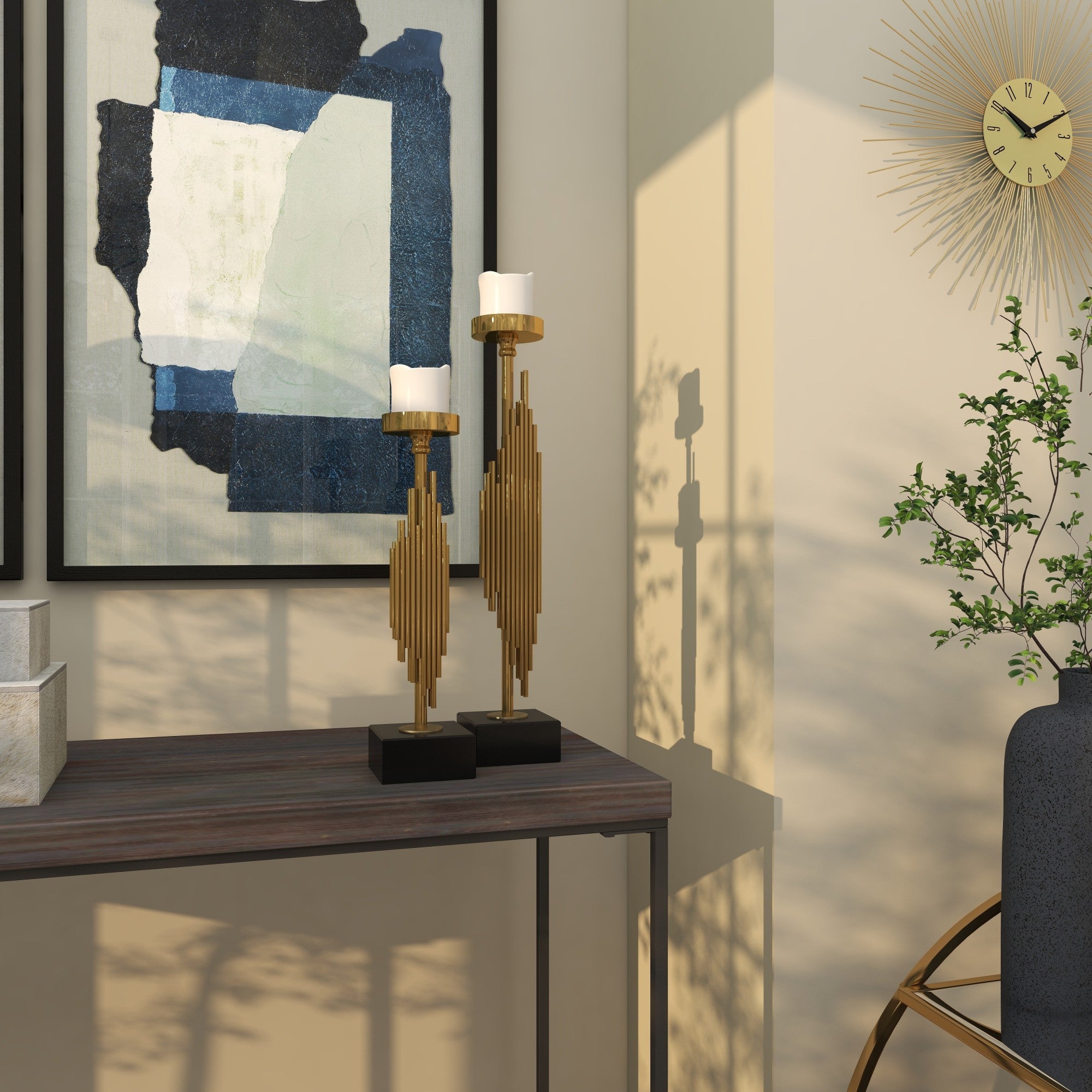 Set of 2 Abstract Gold Stainless Steel Metal Vertical Pipe Decorative Candle Holder with Black Marble Base