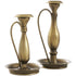 Set of 2 Bronze Metal Antique Style Decorative Candle Holder with Candle Plates and Handles