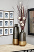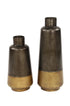 Set of 2 Dark Gray Metal Decorative Vase with Gold Base