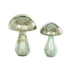 Set of 2 Mushroom Glass Handmade Glossy Weathered Decorative Sculpture