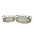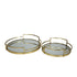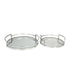 Set of 2 Stainless Steel Metal Round Mirrored Living Room Decor Tray with Elevated Rim and Handles