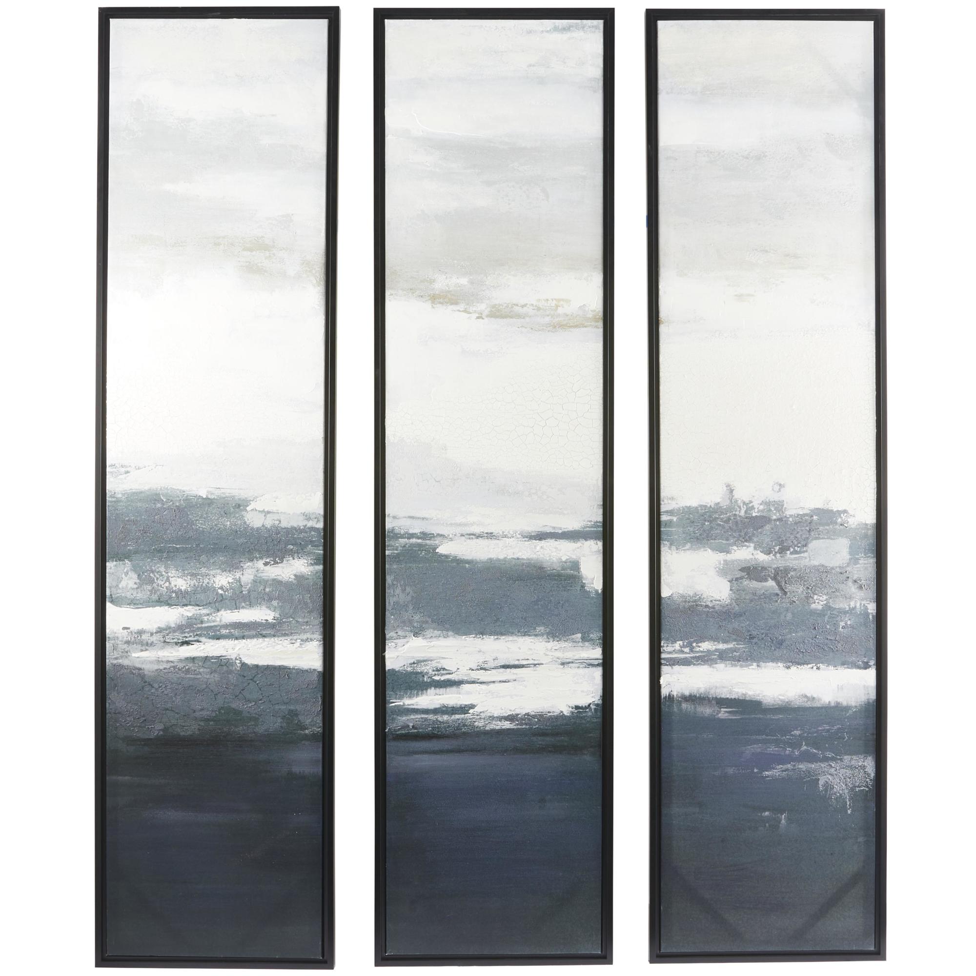 The landscape set of 3 canvas wall art enhances the dimensional aesthetic of your blank walls when displayed together in the entryway, living room, or hallway. This item ships in 1 carton. Can be hung vertically using the d-rings; nails and screws not included. Suitable for indoor use only. This item ships fully assembled in one piece. This canvas canvas wall art comes as a set of 3. Coastal style.