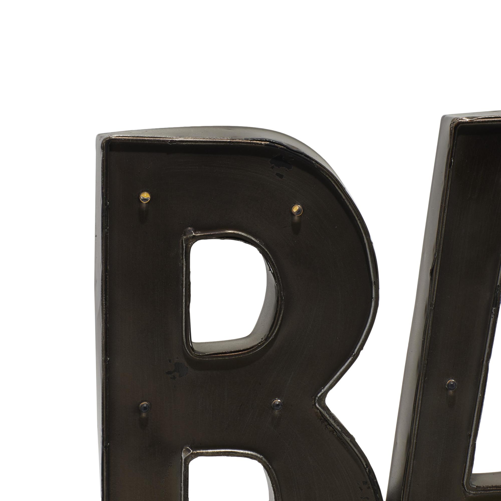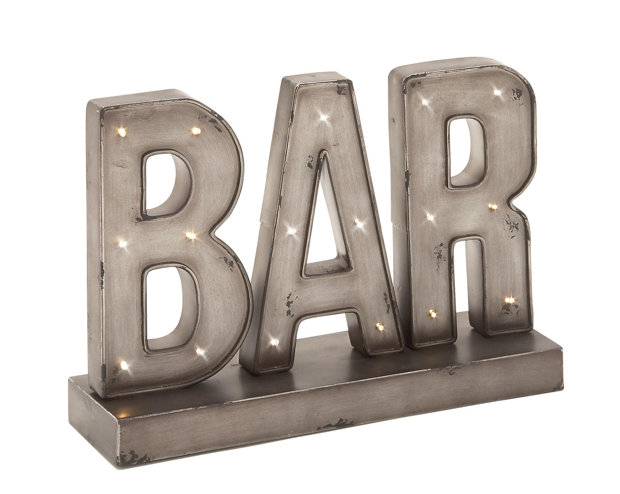 •The industrial room wall decor is expertly shaped from tin to form the word "BAR" and attached to a flat base