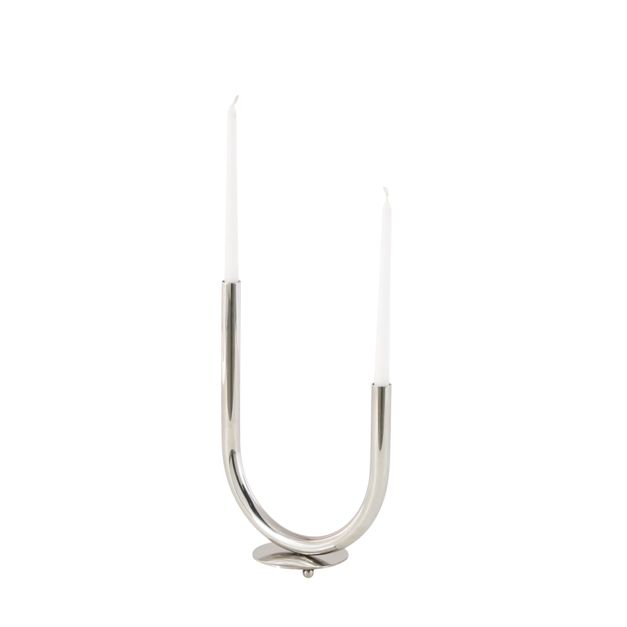 •The stainless-steel candelabra features a sleek U-shaped design and can hold two candles, making it both stylish and functional