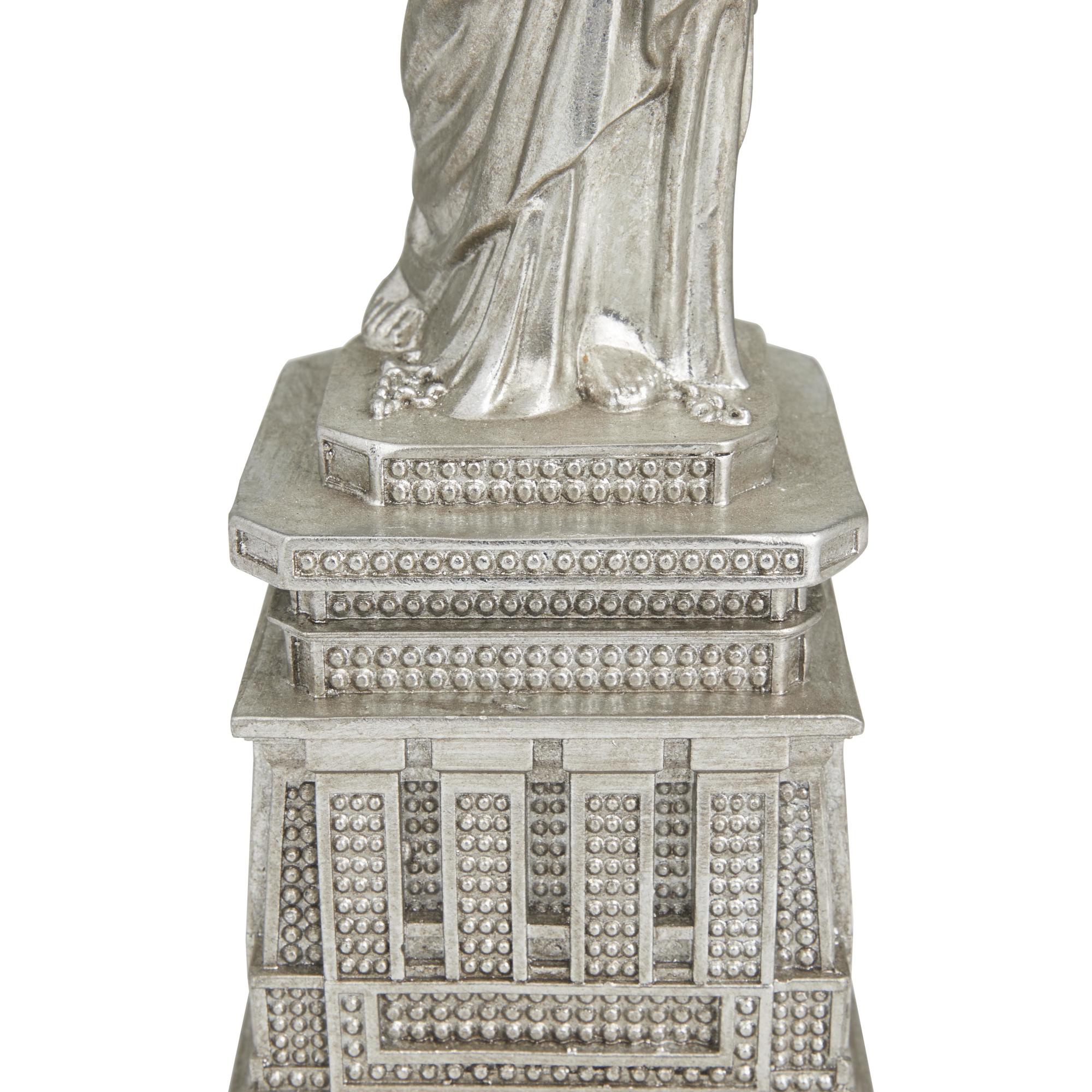 An artistic display to showcase your personality and enhance the look of any open table top space. Enhance your living room with the elegant touch of the Statue of Liberty home decor statue. Designed with felt or rubber stoppers at the base that prevent scratching furniture and table tops, as well as sliding around. This item ships in 1 carton. Please note that this item is for decorative use only. Polystone sculpture makes a great gift for any occasion. Suitable for indoor use only. This item ships fully assembled in one piece. This is a single statue. Traditional style.