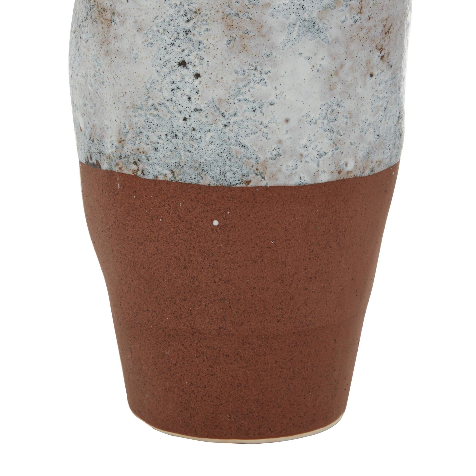 White Ceramic Handmade Decorative Vase with Terracotta Accents